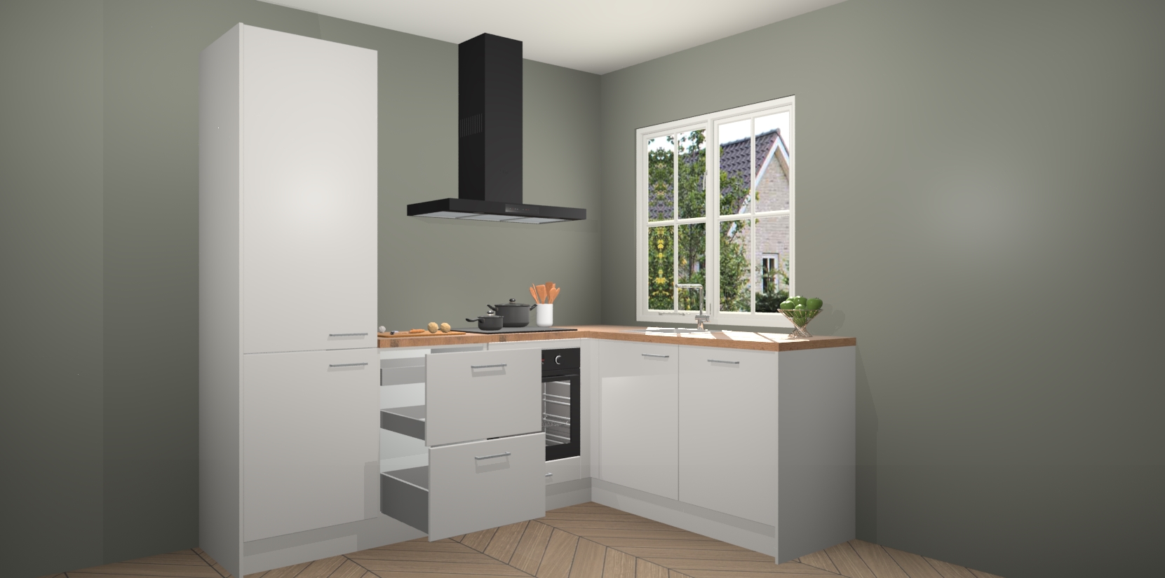 Inclusief plinten, stelpoten en werkblad