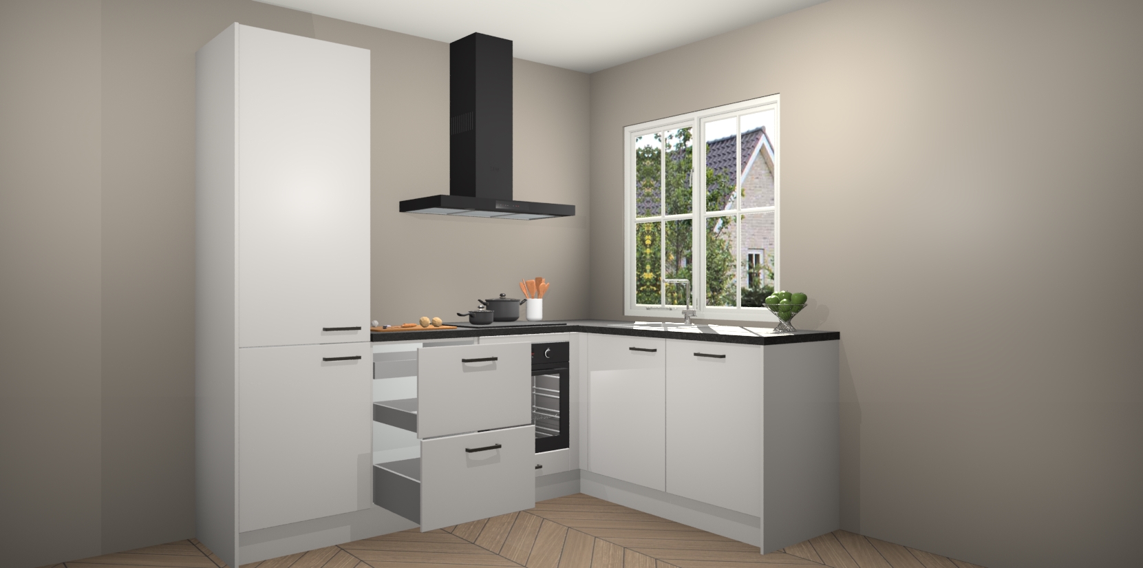 Inclusief plinten, stelpoten en werkblad