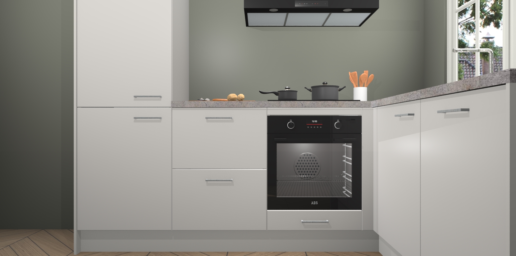 Met de Zijdegrijze keuken Linz krijgt u 5 op maat gemaakte apparaten: een oven, inductiekookplaat, afzuigkap, vaatwasser en koelkast die na bestelling makkelijk worden geüpgraded naar AEG-producten. Met de zacht sluitende deuren, bent u verzekerd van eenvoudige bediening in stilte. Het kastmeubilair wordt alvast pre-assemblage geleverd waardoor u sneller met het installeren begint. Ook zijn alle deuren voorzien van softclose zodat er geen sporen op de lade blijven als u ze dicht doet. Bovendien hoeft u bij ons geen twijfels of verassingen te hebben: we hebben een vaste lage prijs waardoor u weet wat u mag verwachten bij elke bestelling.
