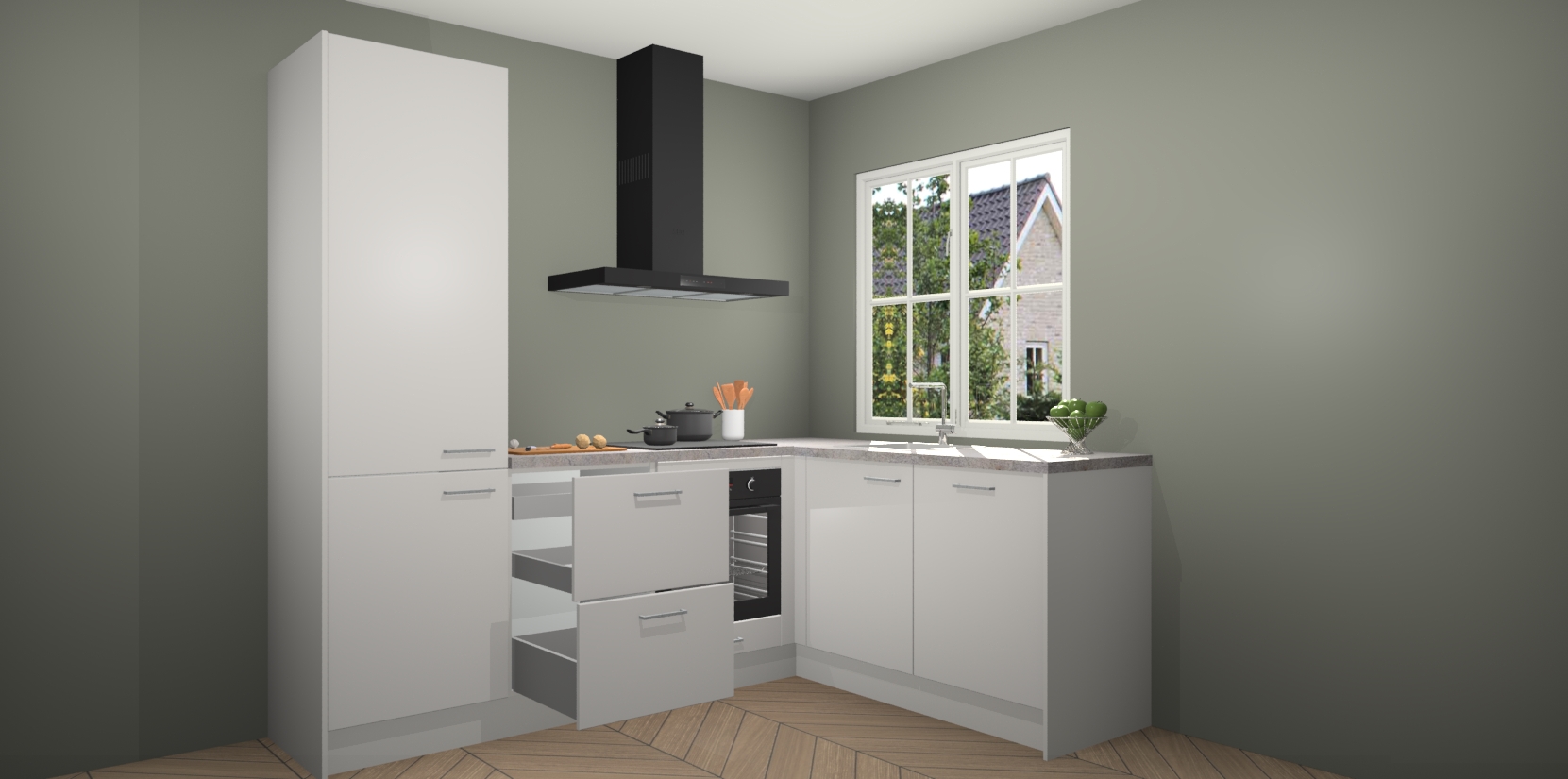 Inclusief plinten, stelpoten en werkblad