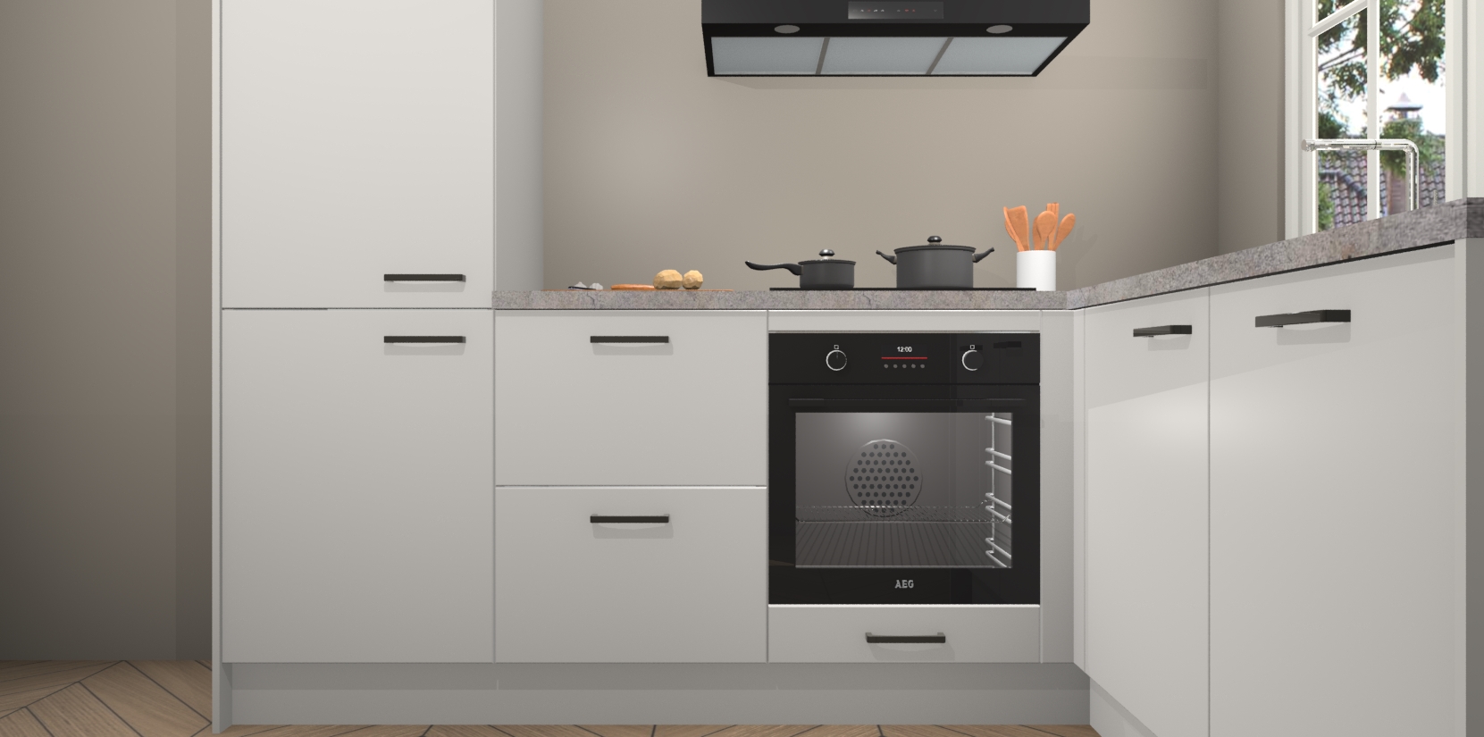 Met de Zijdegrijze keuken Linz krijgt u 5 op maat gemaakte apparaten: een oven, inductiekookplaat, afzuigkap, vaatwasser en koelkast die na bestelling makkelijk worden geüpgraded naar AEG-producten. Met de zacht sluitende deuren, bent u verzekerd van eenvoudige bediening in stilte. Het kastmeubilair wordt alvast pre-assemblage geleverd waardoor u sneller met het installeren begint. Ook zijn alle deuren voorzien van softclose zodat er geen sporen op de lade blijven als u ze dicht doet. Bovendien hoeft u bij ons geen twijfels of verassingen te hebben: we hebben een vaste lage prijs waardoor u weet wat u mag verwachten bij elke bestelling.