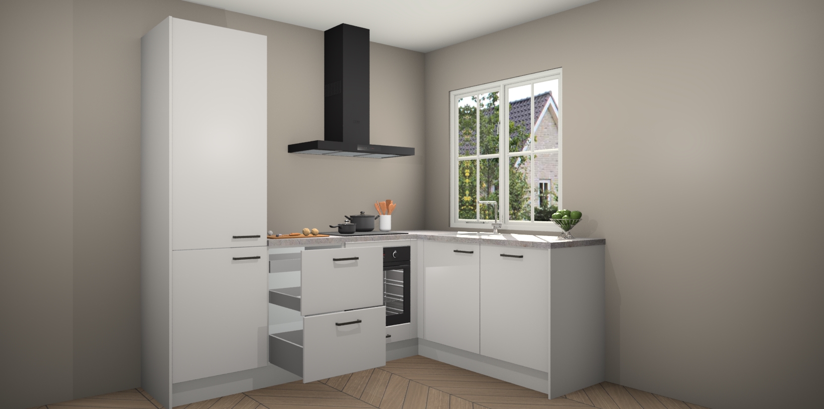 Inclusief plinten, stelpoten en werkblad