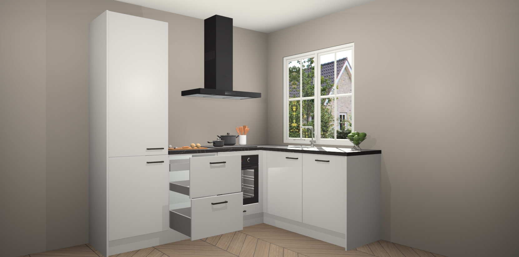 In deze box zijn alle kleuren verzameld van de deuren en werkbladen. Vraag de gratis kleurenbox aan en kijk thuis rustig verder!