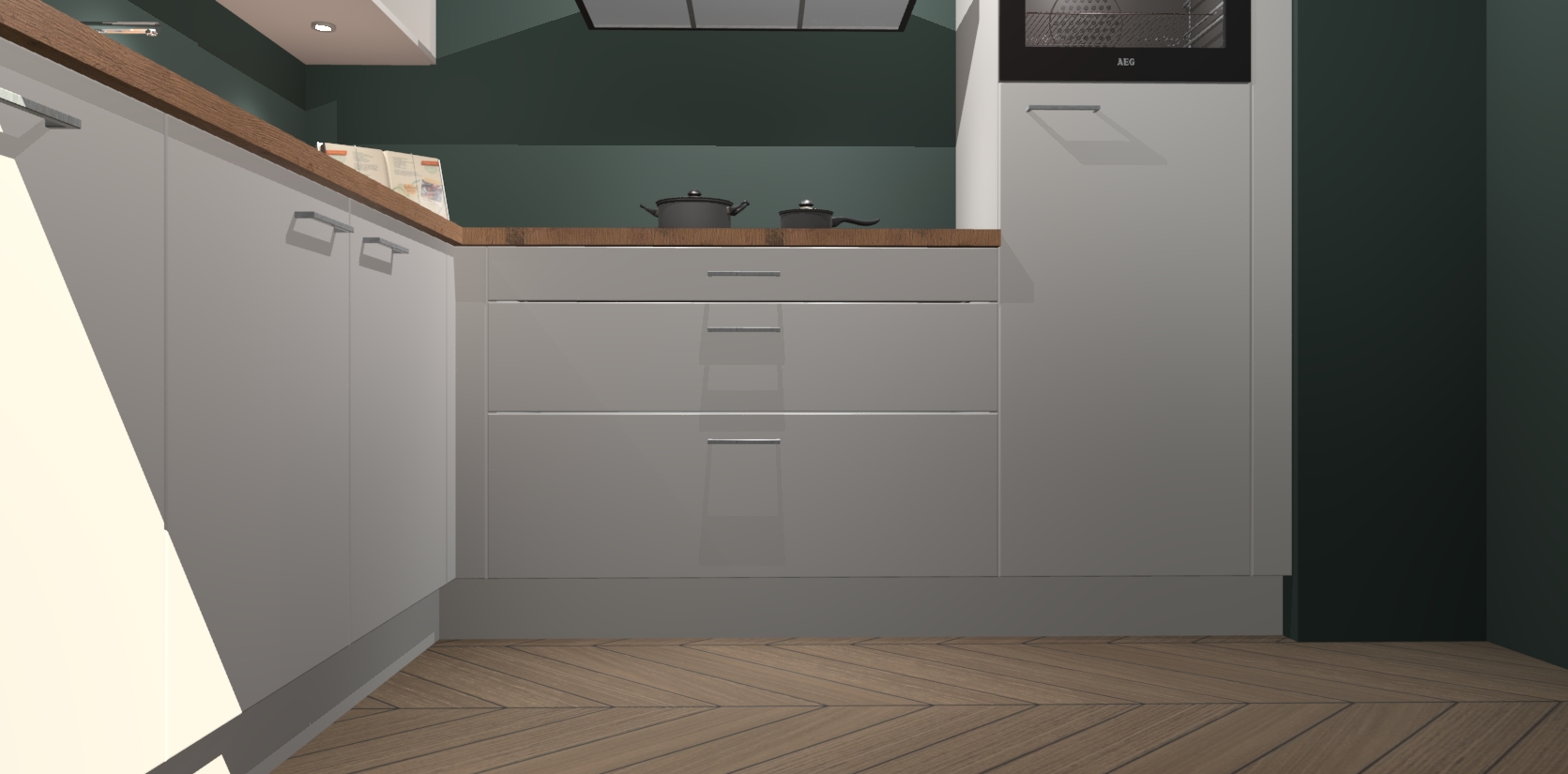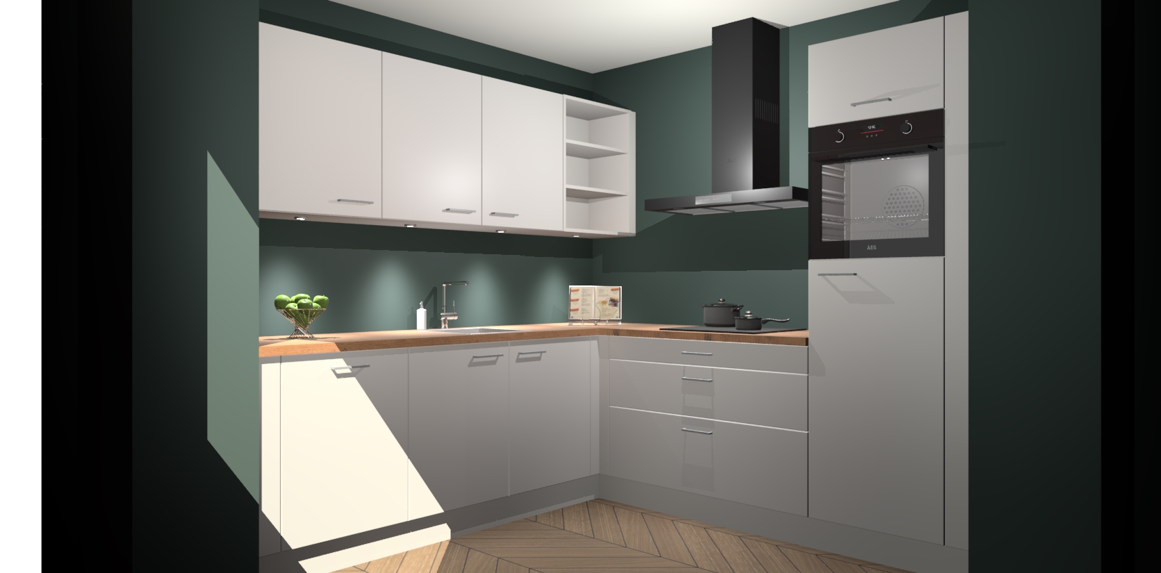 Met een modern, tijdloos design en ruime opslagruimte, zult u zich in no-time thuis voelen in uw nieuwe keuken. Uw leven wordt eenvoudiger met de soft-close deuren die voor het ultieme stille comfort zorgen - geen geluid dat u stoort terwijl u kookt. Ook is de keuken voorzien van 5 ingebouwde apparaten: een oven, inductie kookplaat, afzuigkap, vaatwasser en koelkast. Deze kunnen gemakkelijk na bestelling worden bijgewerkt naar AEG - waardoor uw luxe ervaring compleet is.