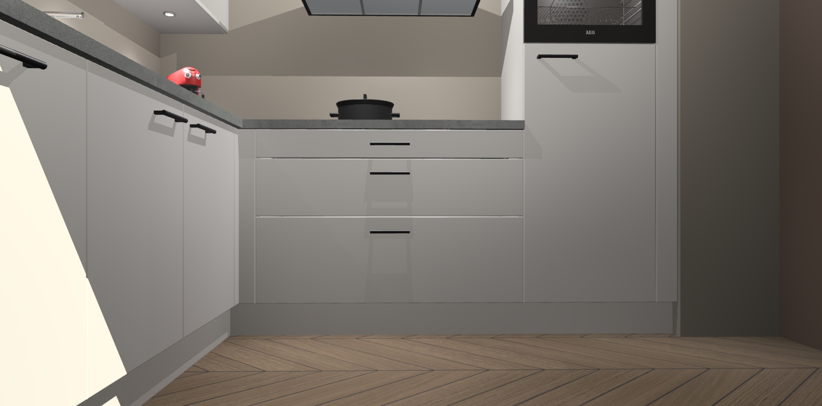 Met een modern, tijdloos design en ruime opslagruimte, zult u zich in no-time thuis voelen in uw nieuwe keuken. Uw leven wordt eenvoudiger met de soft-close deuren die voor het ultieme stille comfort zorgen - geen geluid dat u stoort terwijl u kookt. Ook is de keuken voorzien van 5 ingebouwde apparaten: een oven, inductie kookplaat, afzuigkap, vaatwasser en koelkast. Deze kunnen gemakkelijk na bestelling worden bijgewerkt naar AEG - waardoor uw luxe ervaring compleet is.