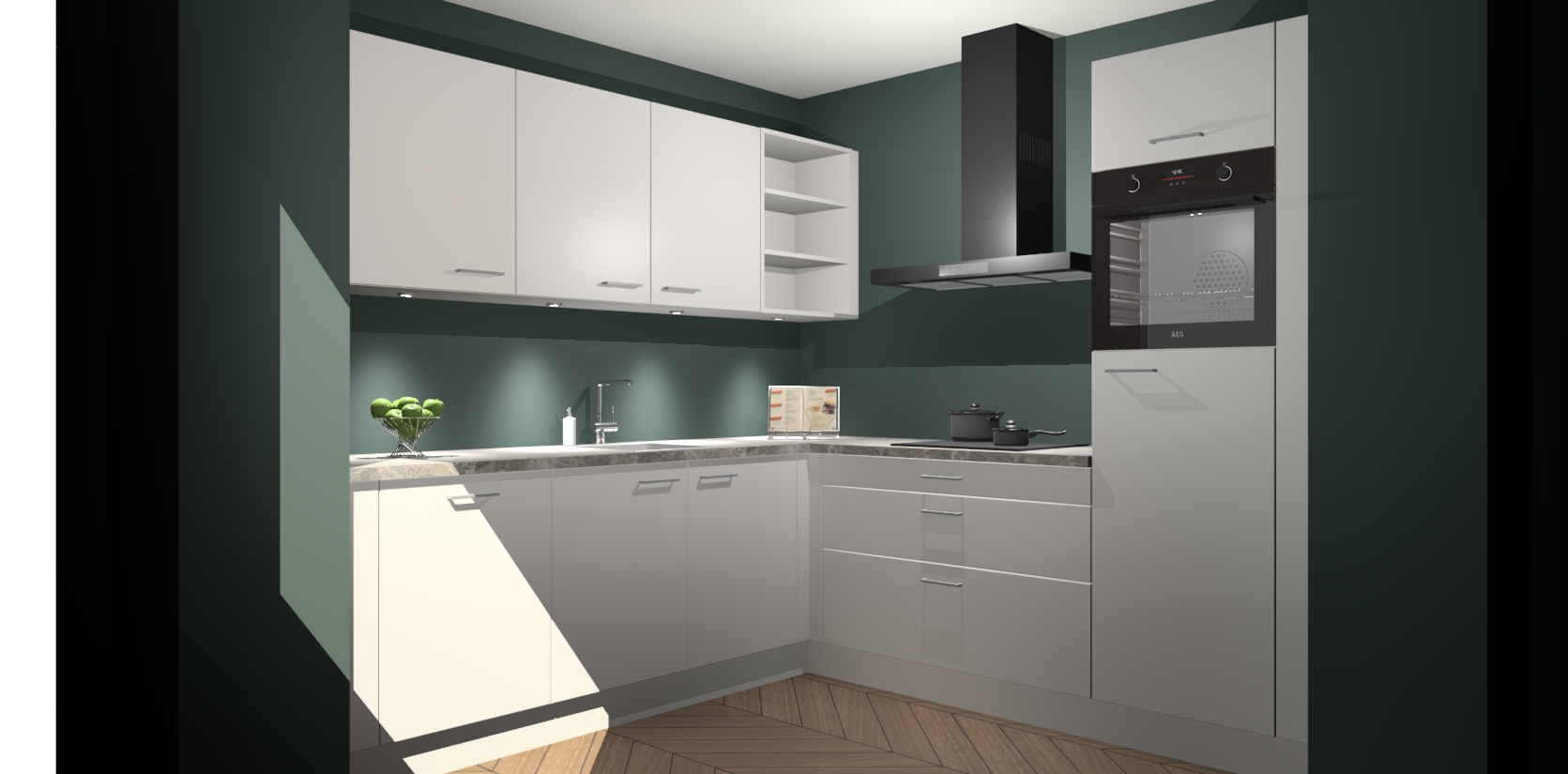 Met een modern, tijdloos design en ruime opslagruimte, zult u zich in no-time thuis voelen in uw nieuwe keuken. Uw leven wordt eenvoudiger met de soft-close deuren die voor het ultieme stille comfort zorgen - geen geluid dat u stoort terwijl u kookt. Ook is de keuken voorzien van 5 ingebouwde apparaten: een oven, inductie kookplaat, afzuigkap, vaatwasser en koelkast. Deze kunnen gemakkelijk na bestelling worden bijgewerkt naar AEG - waardoor uw luxe ervaring compleet is.