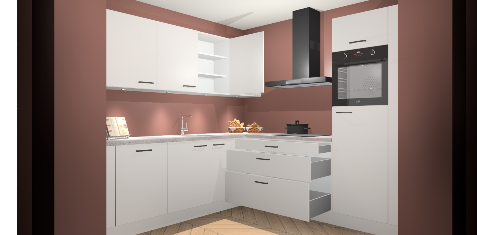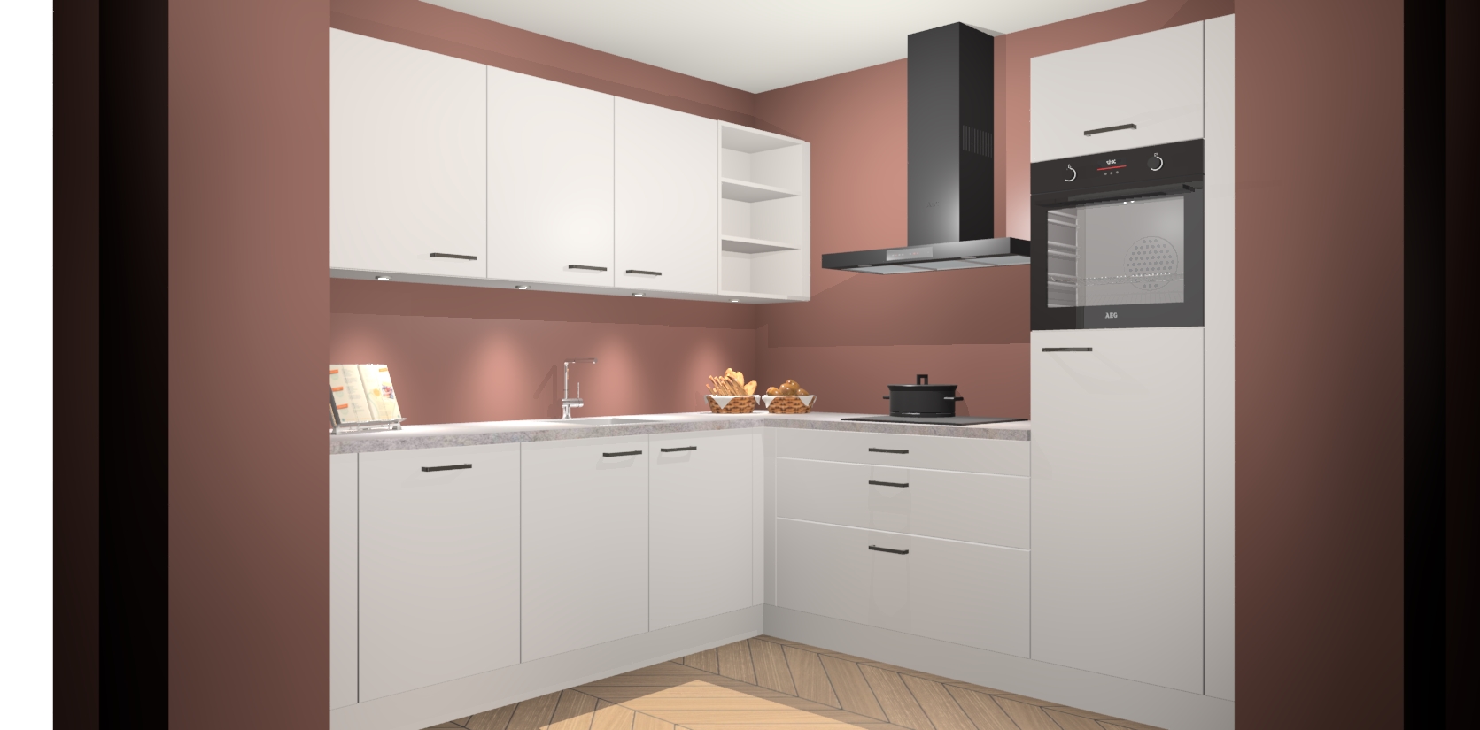 Met een modern, tijdloos design en ruime opslagruimte, zult u zich in no-time thuis voelen in uw nieuwe keuken. Uw leven wordt eenvoudiger met de soft-close deuren die voor het ultieme stille comfort zorgen - geen geluid dat u stoort terwijl u kookt. Ook is de keuken voorzien van 5 ingebouwde apparaten: een oven, inductie kookplaat, afzuigkap, vaatwasser en koelkast. Deze kunnen gemakkelijk na bestelling worden bijgewerkt naar AEG - waardoor uw luxe ervaring compleet is.