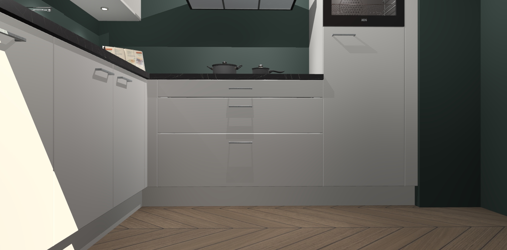 Met een modern, tijdloos design en ruime opslagruimte, zult u zich in no-time thuis voelen in uw nieuwe keuken. Uw leven wordt eenvoudiger met de soft-close deuren die voor het ultieme stille comfort zorgen - geen geluid dat u stoort terwijl u kookt. Ook is de keuken voorzien van 5 ingebouwde apparaten: een oven, inductie kookplaat, afzuigkap, vaatwasser en koelkast. Deze kunnen gemakkelijk na bestelling worden bijgewerkt naar AEG - waardoor uw luxe ervaring compleet is.