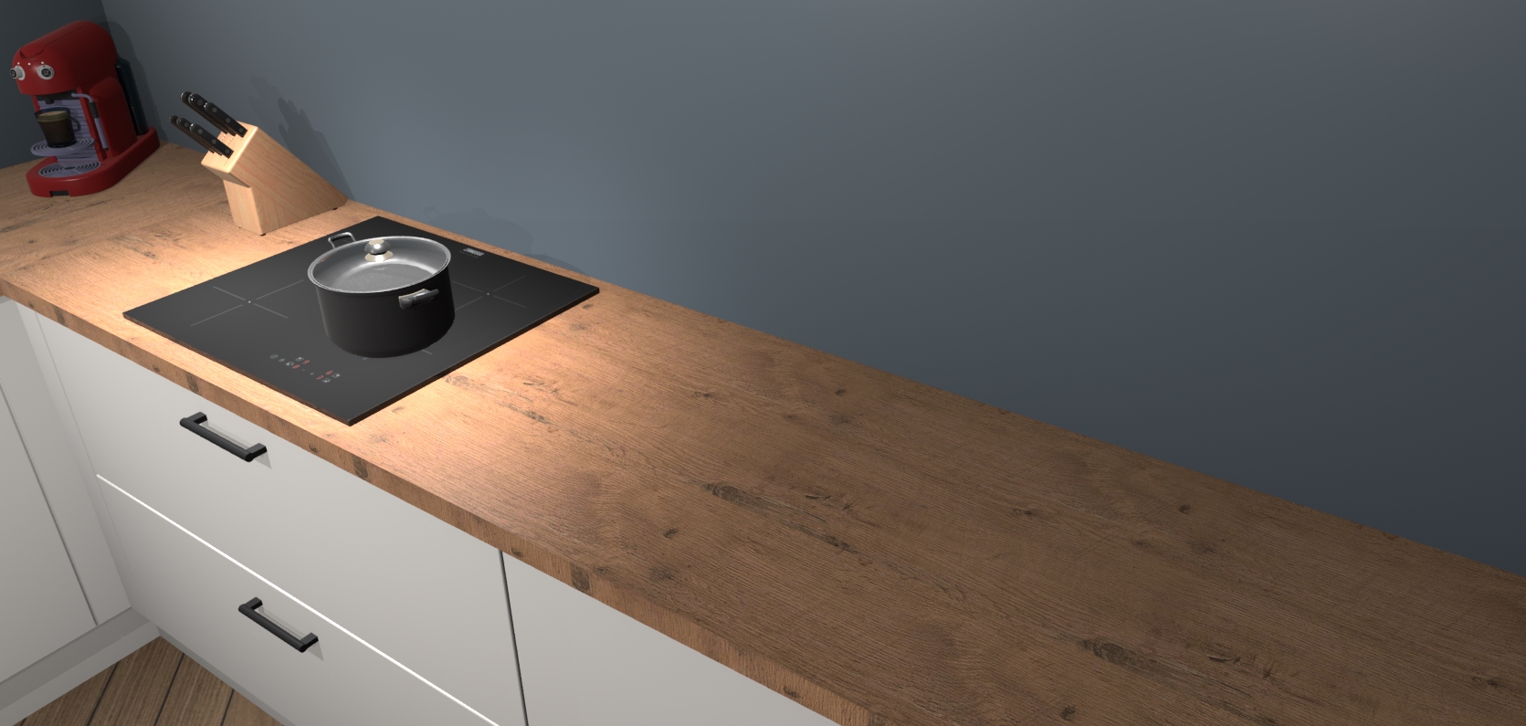 - Bij een hoekwerkblad zijn de hoeken in gevreesd en op maat gemaakt