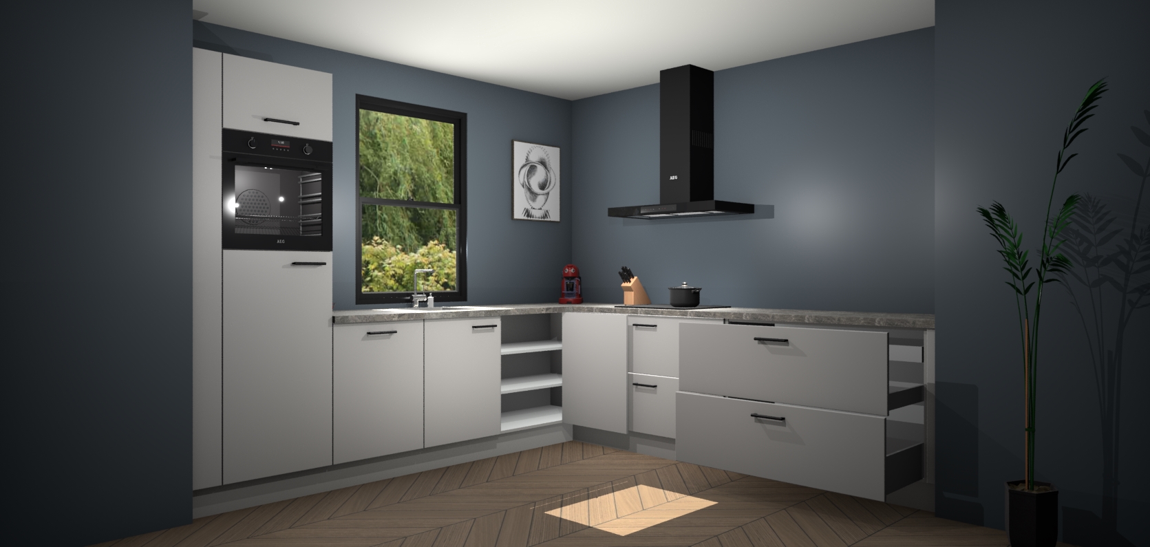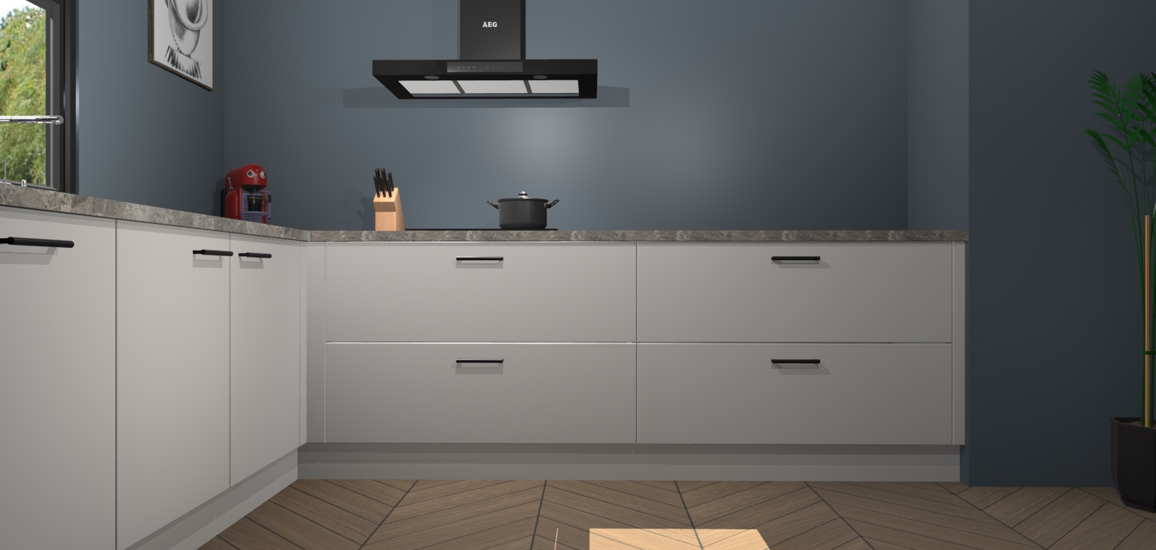 Inclusief plinten, stelpoten en werkblad