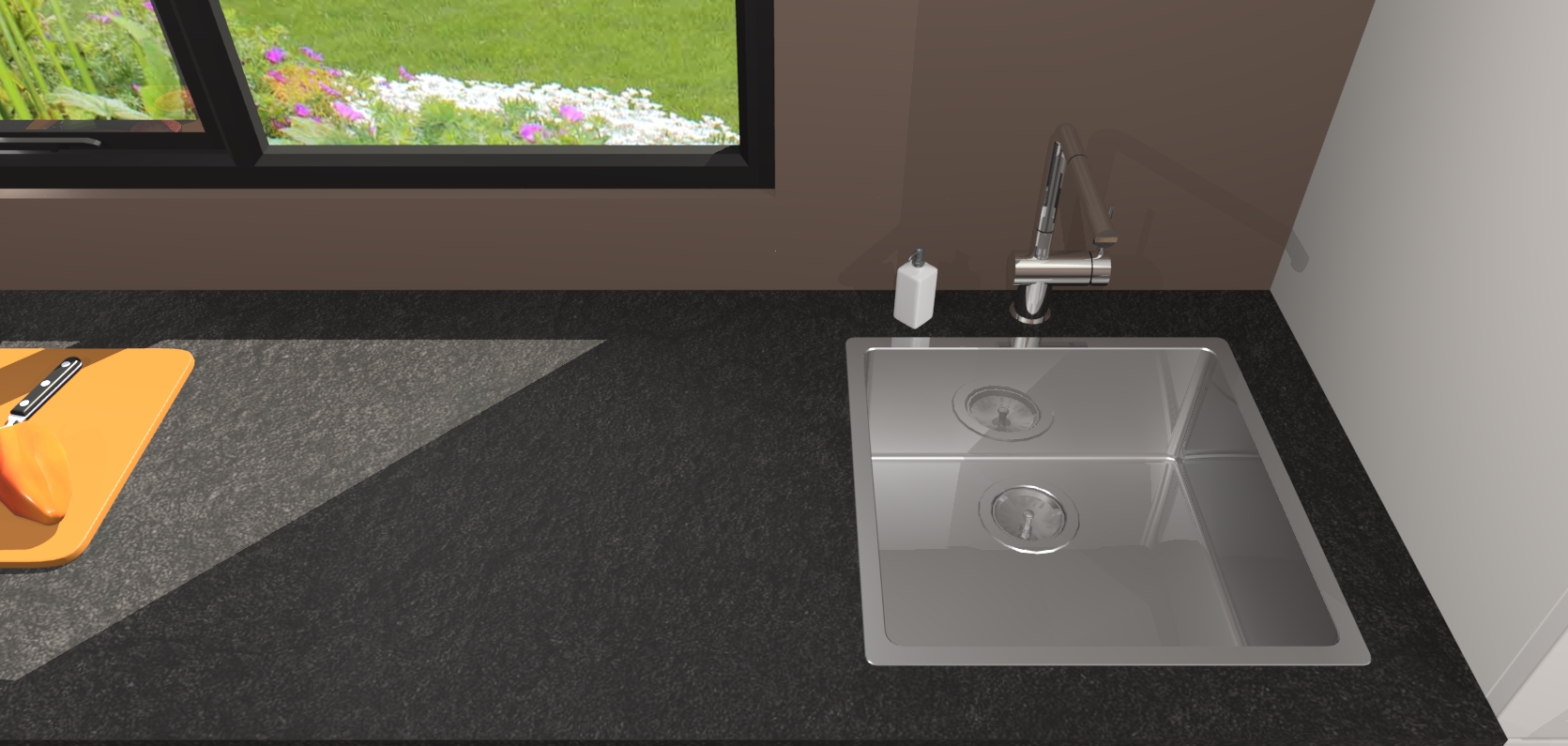 • De spoelbak is nog niet in gevreesd. Dit dient tijdens het werk gedaan te worden