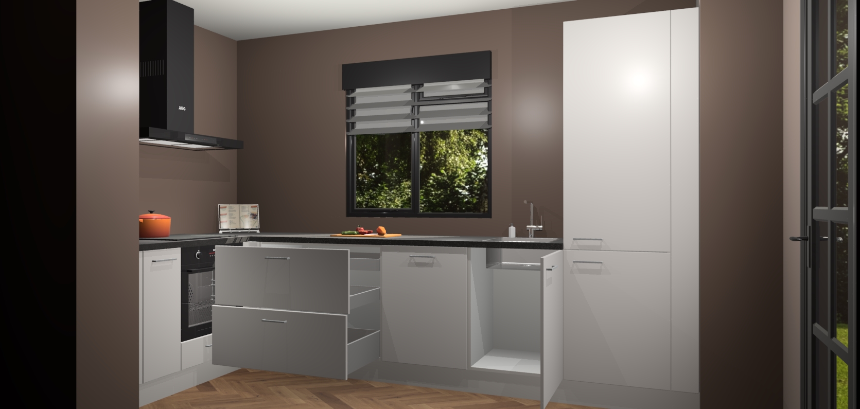 In deze box zijn alle kleuren verzameld van de deuren en werkbladen. Vraag de gratis kleurenbox aan en kijk thuis rustig verder!