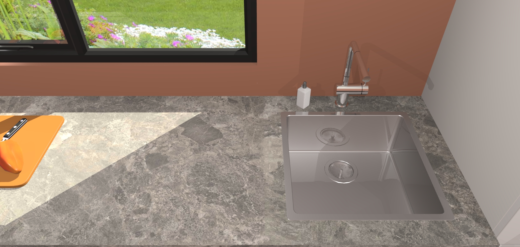- De spoelbak is nog niet in gevreesd. Dit dient tijdens het werk gedaan te worden