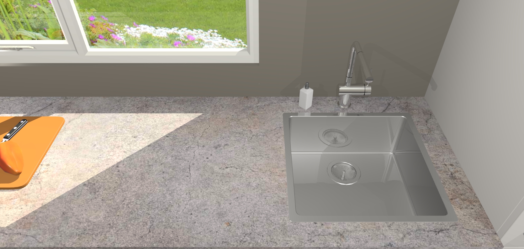 - De spoelbak is nog niet in gevreesd. Dit dient tijdens het werk gedaan te worden