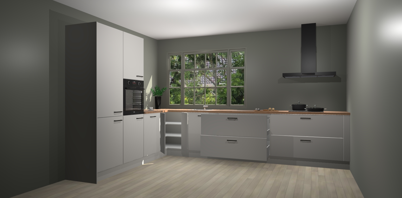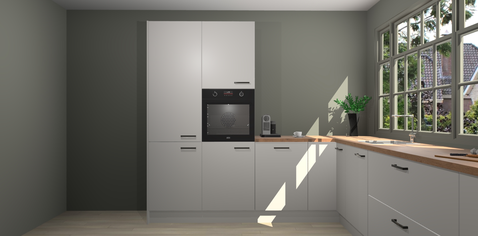 Kom dichtbij de perfecte keuken van uw dromen met de Zijdegrijze keuken Malaga. Met een prachtige houtlook en eigentijds ontwerp, straalt deze keuken warmte en sfeer uit. Of u nu liefhebber bent van traditionele of moderne stijlen, er is genoeg ruimte om aan al uw behoeften te voldoen.