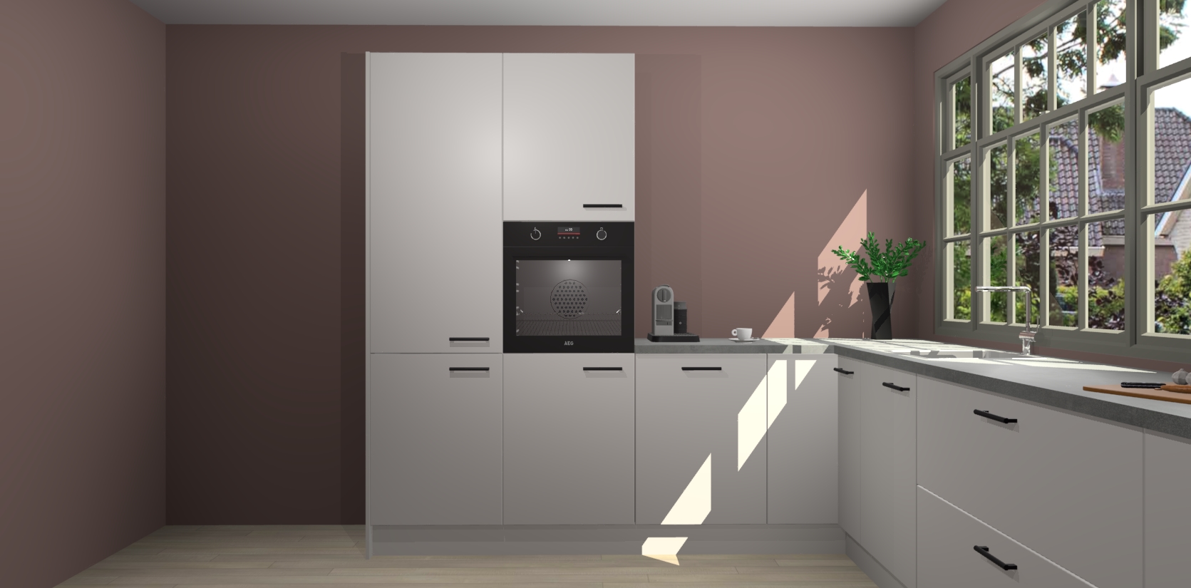 Kom dichtbij de perfecte keuken van uw dromen met de Zijdegrijze keuken Malaga. Met een prachtige houtlook en eigentijds ontwerp, straalt deze keuken warmte en sfeer uit. Of u nu liefhebber bent van traditionele of moderne stijlen, er is genoeg ruimte om aan al uw behoeften te voldoen.