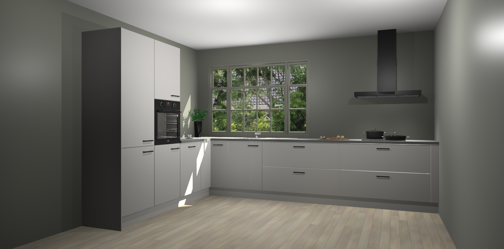 Kom dichtbij de perfecte keuken van uw dromen met de Zijdegrijze keuken Malaga. Met een prachtige houtlook en eigentijds ontwerp, straalt deze keuken warmte en sfeer uit. Of u nu liefhebber bent van traditionele of moderne stijlen, er is genoeg ruimte om aan al uw behoeften te voldoen.