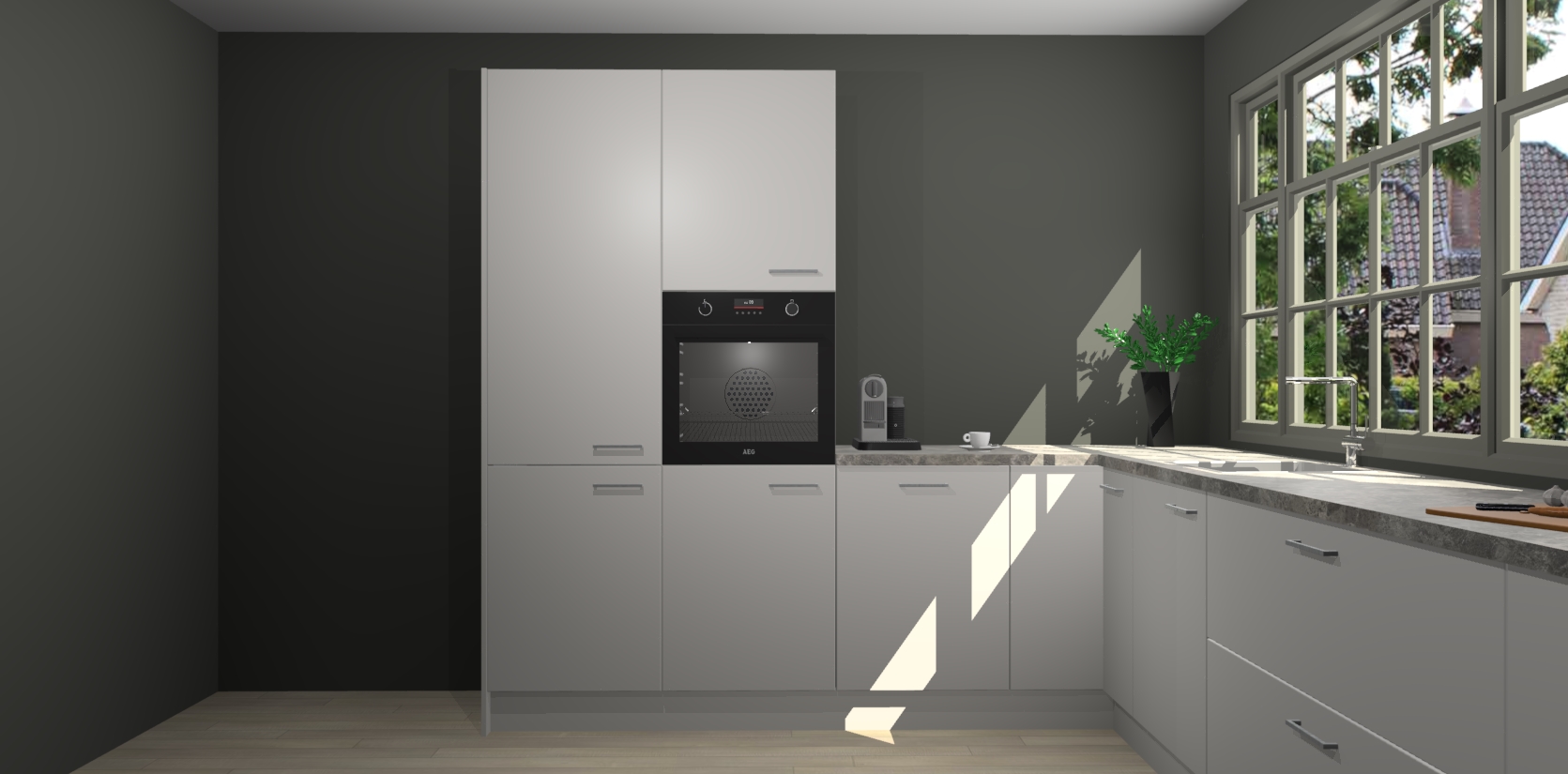Kom dichtbij de perfecte keuken van uw dromen met de Zijdegrijze keuken Malaga. Met een prachtige houtlook en eigentijds ontwerp, straalt deze keuken warmte en sfeer uit. Of u nu liefhebber bent van traditionele of moderne stijlen, er is genoeg ruimte om aan al uw behoeften te voldoen.