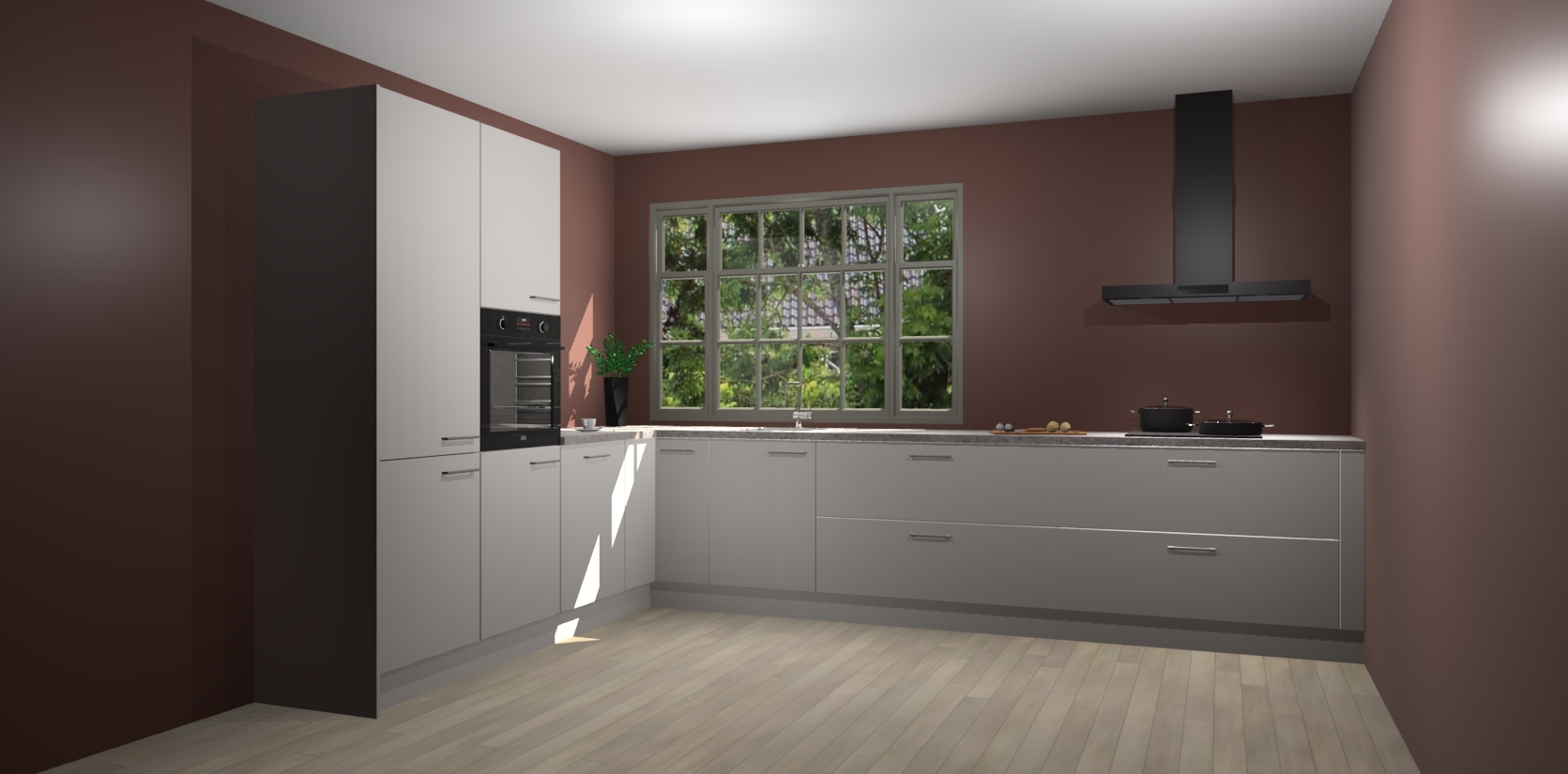 Kom dichtbij de perfecte keuken van uw dromen met de Zijdegrijze keuken Malaga. Met een prachtige houtlook en eigentijds ontwerp, straalt deze keuken warmte en sfeer uit. Of u nu liefhebber bent van traditionele of moderne stijlen, er is genoeg ruimte om aan al uw behoeften te voldoen.