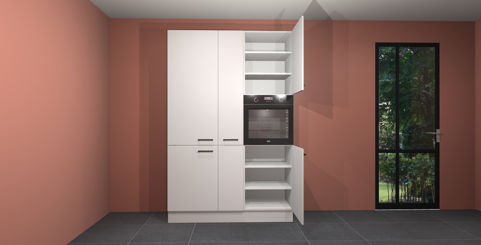 Met een modern, tijdloos design en ruime opslagruimte, zult u zich in no-time thuis voelen in uw nieuwe keuken. Uw leven wordt eenvoudiger met de soft-close deuren die voor het ultieme stille comfort zorgen - geen geluid dat u stoort terwijl u kookt. Ook is de keuken voorzien van 5 ingebouwde apparaten: een oven, inductie kookplaat, afzuigkap, vaatwasser en koelkast. Deze kunnen gemakkelijk na bestelling worden bijgewerkt naar AEG - waardoor uw luxe ervaring compleet is.