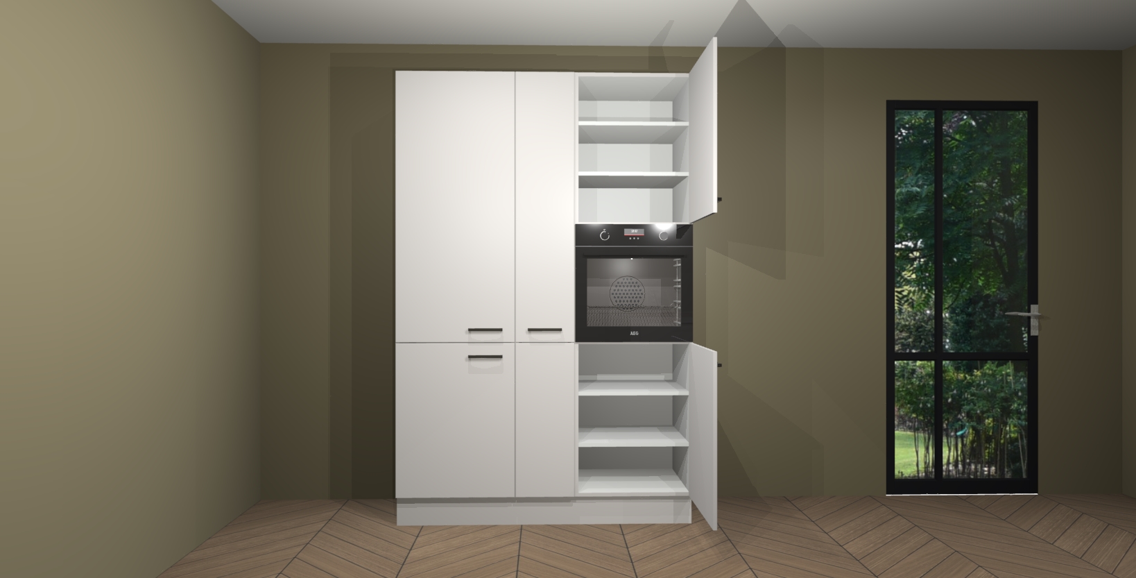 Met een modern, tijdloos design en ruime opslagruimte, zult u zich in no-time thuis voelen in uw nieuwe keuken. Uw leven wordt eenvoudiger met de soft-close deuren die voor het ultieme stille comfort zorgen - geen geluid dat u stoort terwijl u kookt. Ook is de keuken voorzien van 5 ingebouwde apparaten: een oven, inductie kookplaat, afzuigkap, vaatwasser en koelkast. Deze kunnen gemakkelijk na bestelling worden bijgewerkt naar AEG - waardoor uw luxe ervaring compleet is.