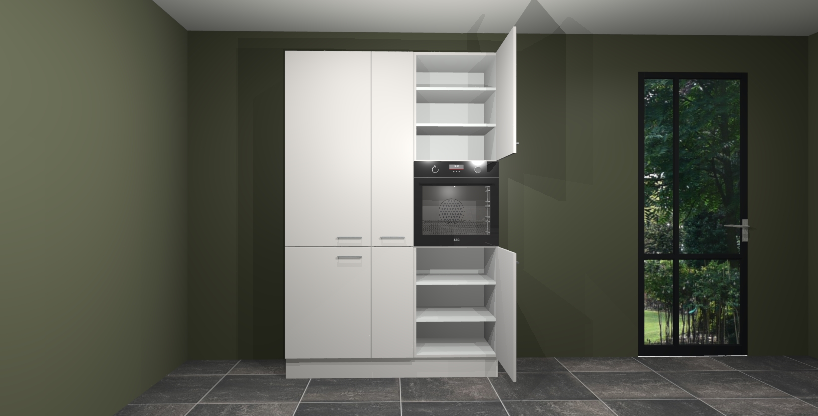 Met een modern, tijdloos design en ruime opslagruimte, zult u zich in no-time thuis voelen in uw nieuwe keuken. Uw leven wordt eenvoudiger met de soft-close deuren die voor het ultieme stille comfort zorgen - geen geluid dat u stoort terwijl u kookt. Ook is de keuken voorzien van 5 ingebouwde apparaten: een oven, inductie kookplaat, afzuigkap, vaatwasser en koelkast. Deze kunnen gemakkelijk na bestelling worden bijgewerkt naar AEG - waardoor uw luxe ervaring compleet is.