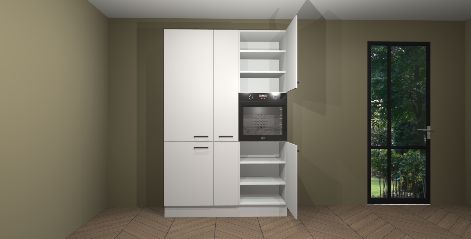Met een modern, tijdloos design en ruime opslagruimte, zult u zich in no-time thuis voelen in uw nieuwe keuken. Uw leven wordt eenvoudiger met de soft-close deuren die voor het ultieme stille comfort zorgen - geen geluid dat u stoort terwijl u kookt. Ook is de keuken voorzien van 5 ingebouwde apparaten: een oven, inductie kookplaat, afzuigkap, vaatwasser en koelkast. Deze kunnen gemakkelijk na bestelling worden bijgewerkt naar AEG - waardoor uw luxe ervaring compleet is.