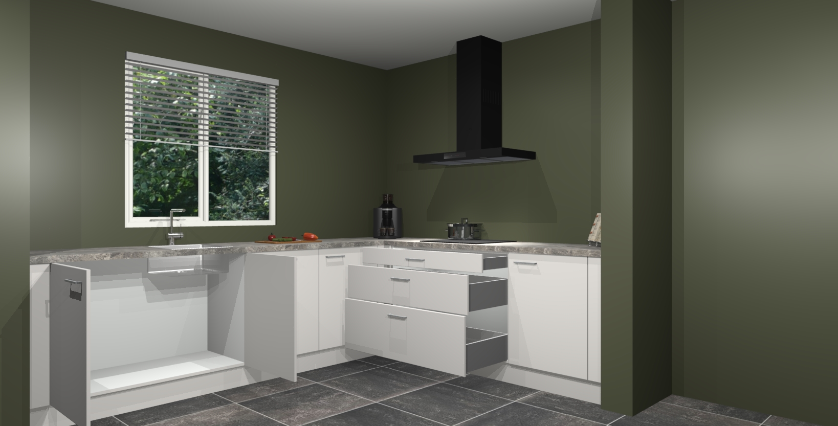- Bij een hoekwerkblad zijn de hoeken in gevreesd en op maat gemaakt