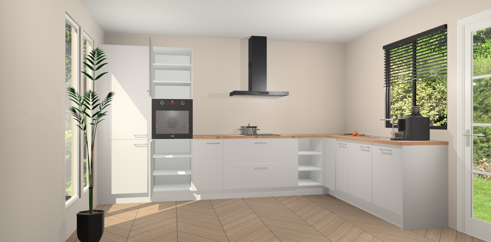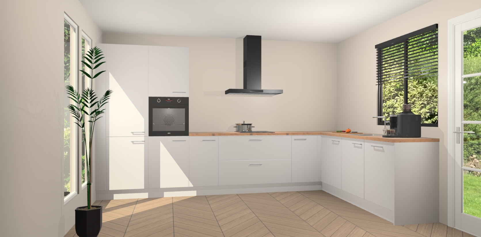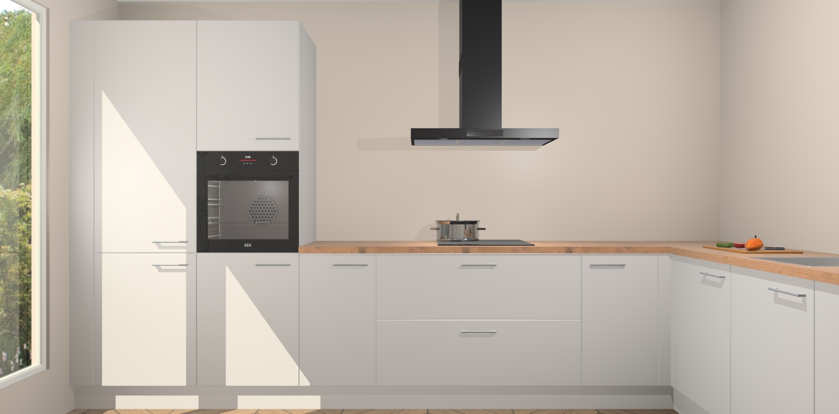Met een modern, tijdloos design en ruime opslagruimte, zult u zich in no-time thuis voelen in uw nieuwe keuken. Uw leven wordt eenvoudiger met de soft-close deuren die voor het ultieme stille comfort zorgen - geen geluid dat u stoort terwijl u kookt. Ook is de keuken voorzien van 5 ingebouwde apparaten: een oven, inductie kookplaat, afzuigkap, vaatwasser en koelkast. Deze kunnen gemakkelijk na bestelling worden bijgewerkt naar AEG - waardoor uw luxe ervaring compleet is.