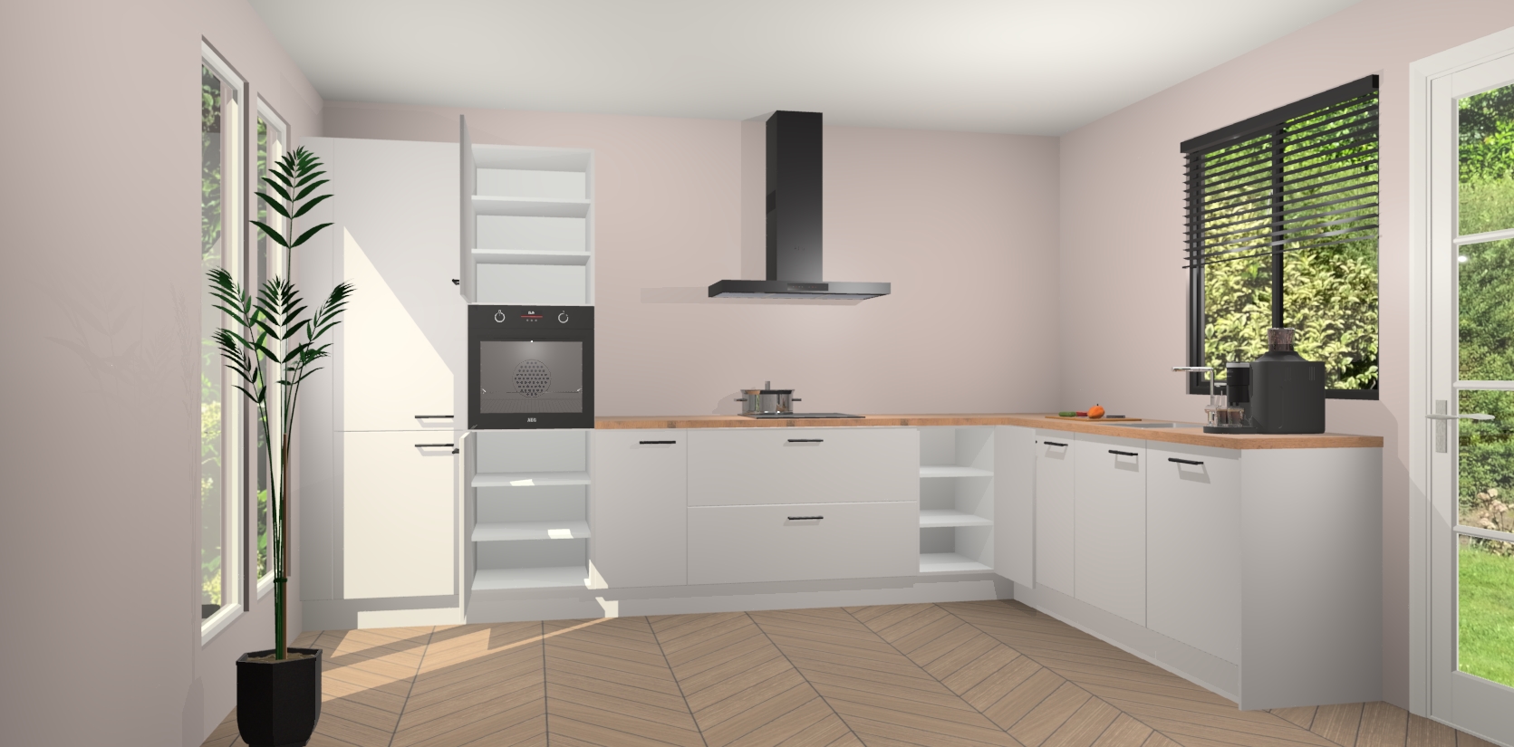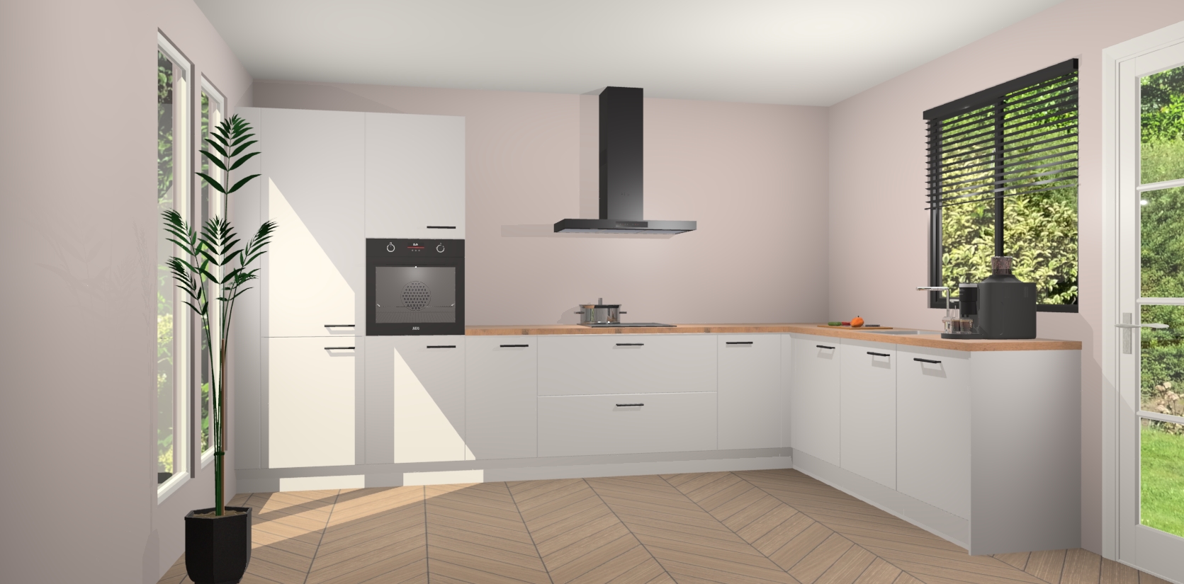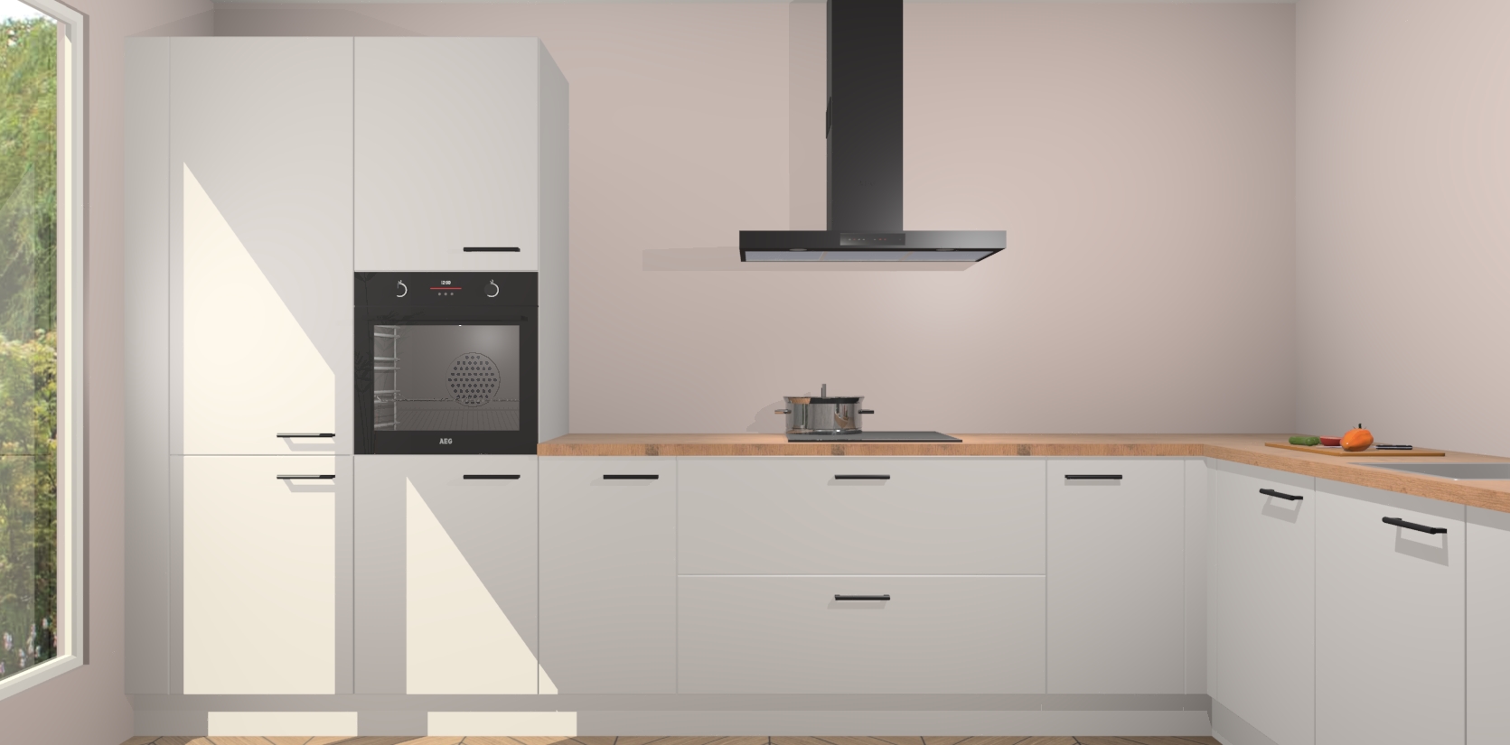 Met een modern, tijdloos design en ruime opslagruimte, zult u zich in no-time thuis voelen in uw nieuwe keuken. Uw leven wordt eenvoudiger met de soft-close deuren die voor het ultieme stille comfort zorgen - geen geluid dat u stoort terwijl u kookt. Ook is de keuken voorzien van 5 ingebouwde apparaten: een oven, inductie kookplaat, afzuigkap, vaatwasser en koelkast. Deze kunnen gemakkelijk na bestelling worden bijgewerkt naar AEG - waardoor uw luxe ervaring compleet is.