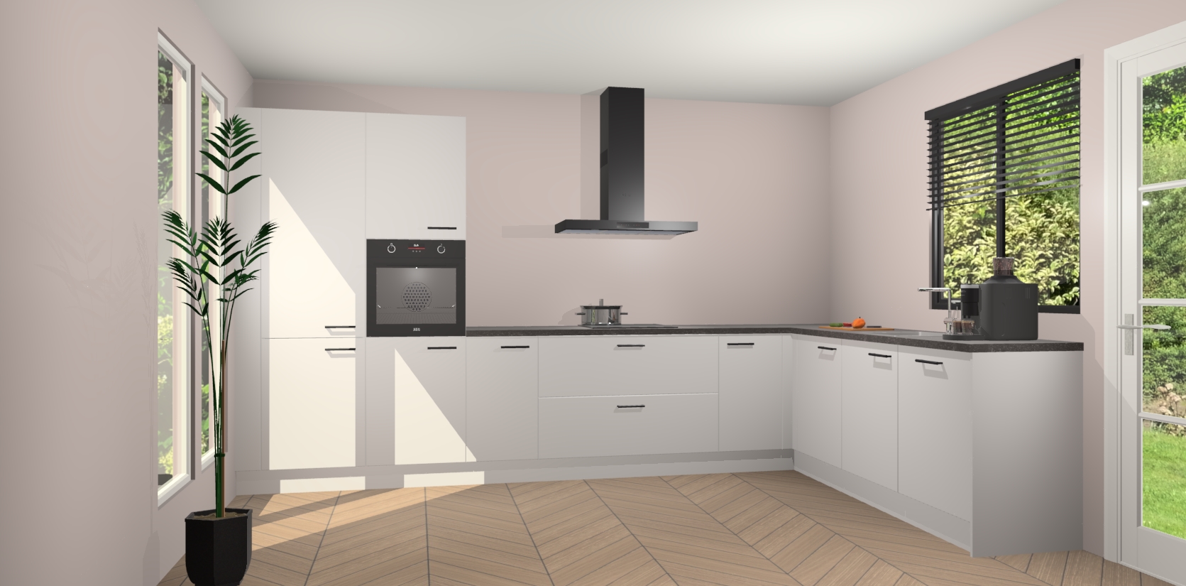 Met een modern, tijdloos design en ruime opslagruimte, zult u zich in no-time thuis voelen in uw nieuwe keuken. Uw leven wordt eenvoudiger met de soft-close deuren die voor het ultieme stille comfort zorgen - geen geluid dat u stoort terwijl u kookt. Ook is de keuken voorzien van 5 ingebouwde apparaten: een oven, inductie kookplaat, afzuigkap, vaatwasser en koelkast. Deze kunnen gemakkelijk na bestelling worden bijgewerkt naar AEG - waardoor uw luxe ervaring compleet is.