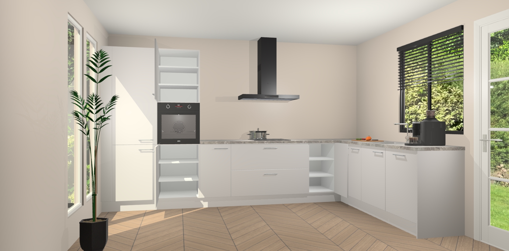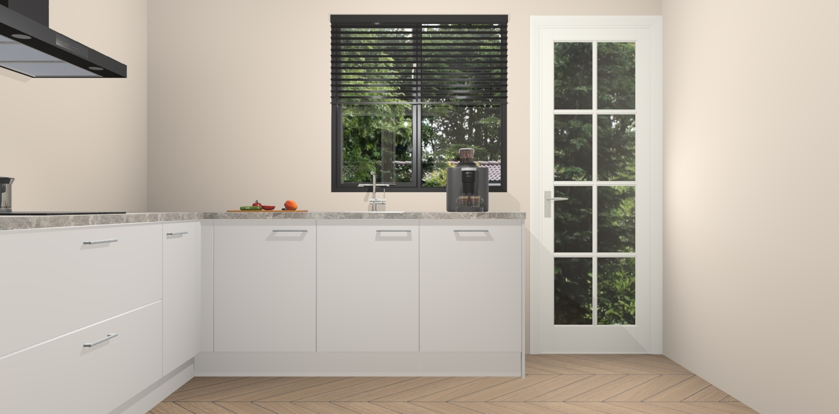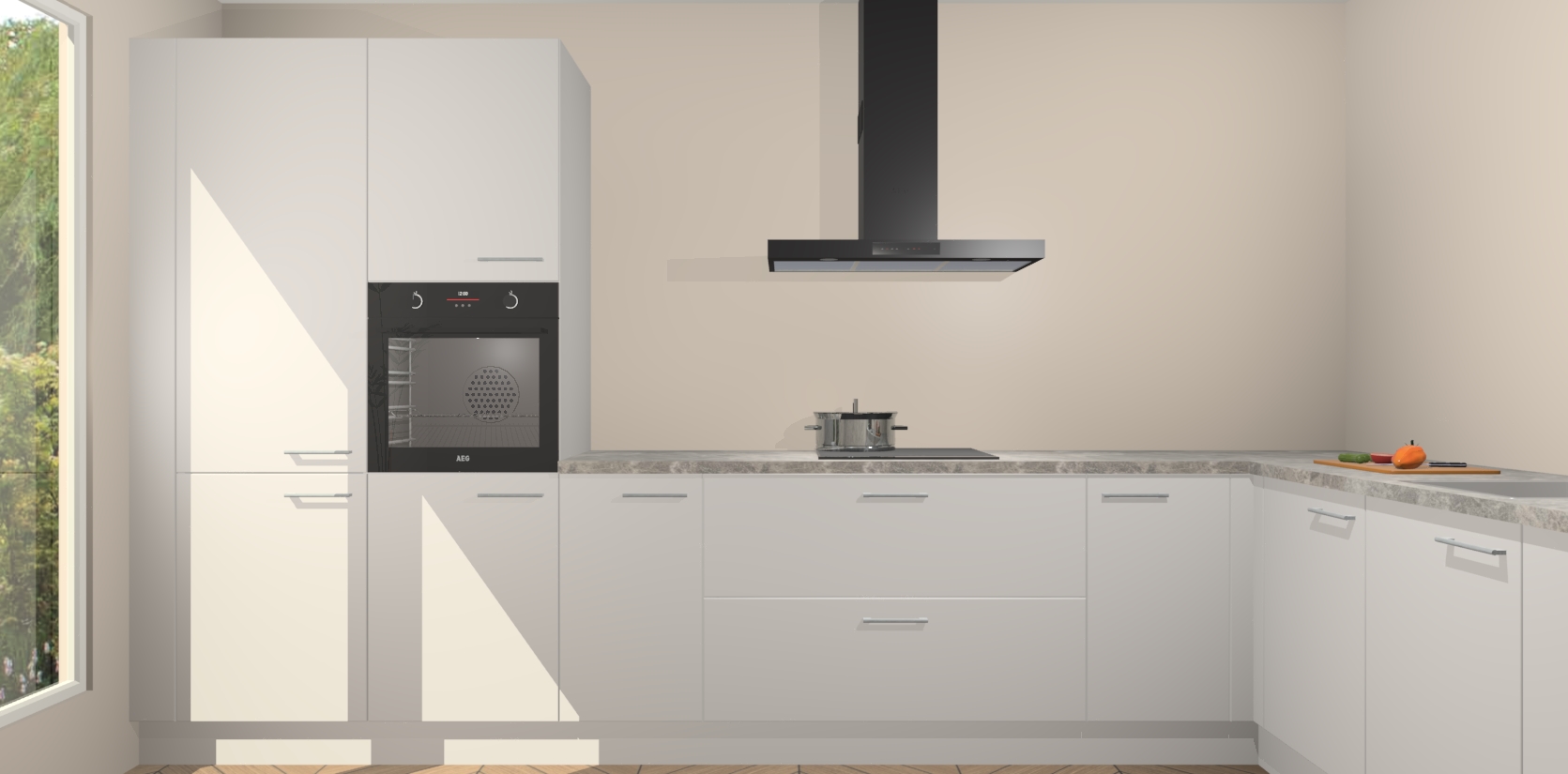 Met een modern, tijdloos design en ruime opslagruimte, zult u zich in no-time thuis voelen in uw nieuwe keuken. Uw leven wordt eenvoudiger met de soft-close deuren die voor het ultieme stille comfort zorgen - geen geluid dat u stoort terwijl u kookt. Ook is de keuken voorzien van 5 ingebouwde apparaten: een oven, inductie kookplaat, afzuigkap, vaatwasser en koelkast. Deze kunnen gemakkelijk na bestelling worden bijgewerkt naar AEG - waardoor uw luxe ervaring compleet is.