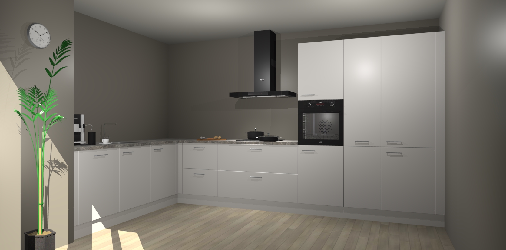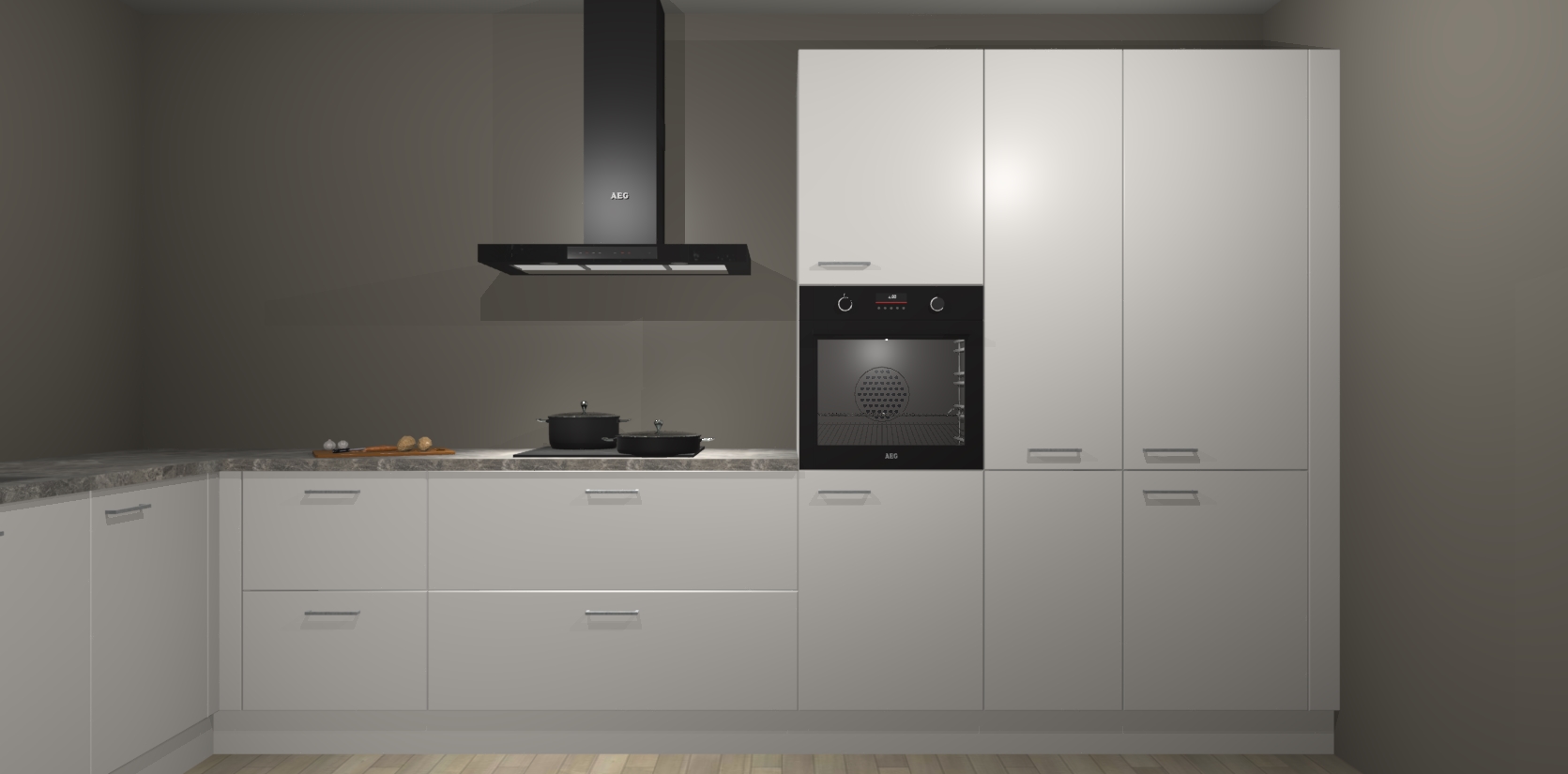 Welkom bij de zijdegrijze keuken Nuuk. Deze prachtige keuken zal de komende jaren het middelpunt van de belangstelling in uw huis zijn. Uitgerust met vijf inbouwapparaten komt u nooit kookgereedschap tekort.