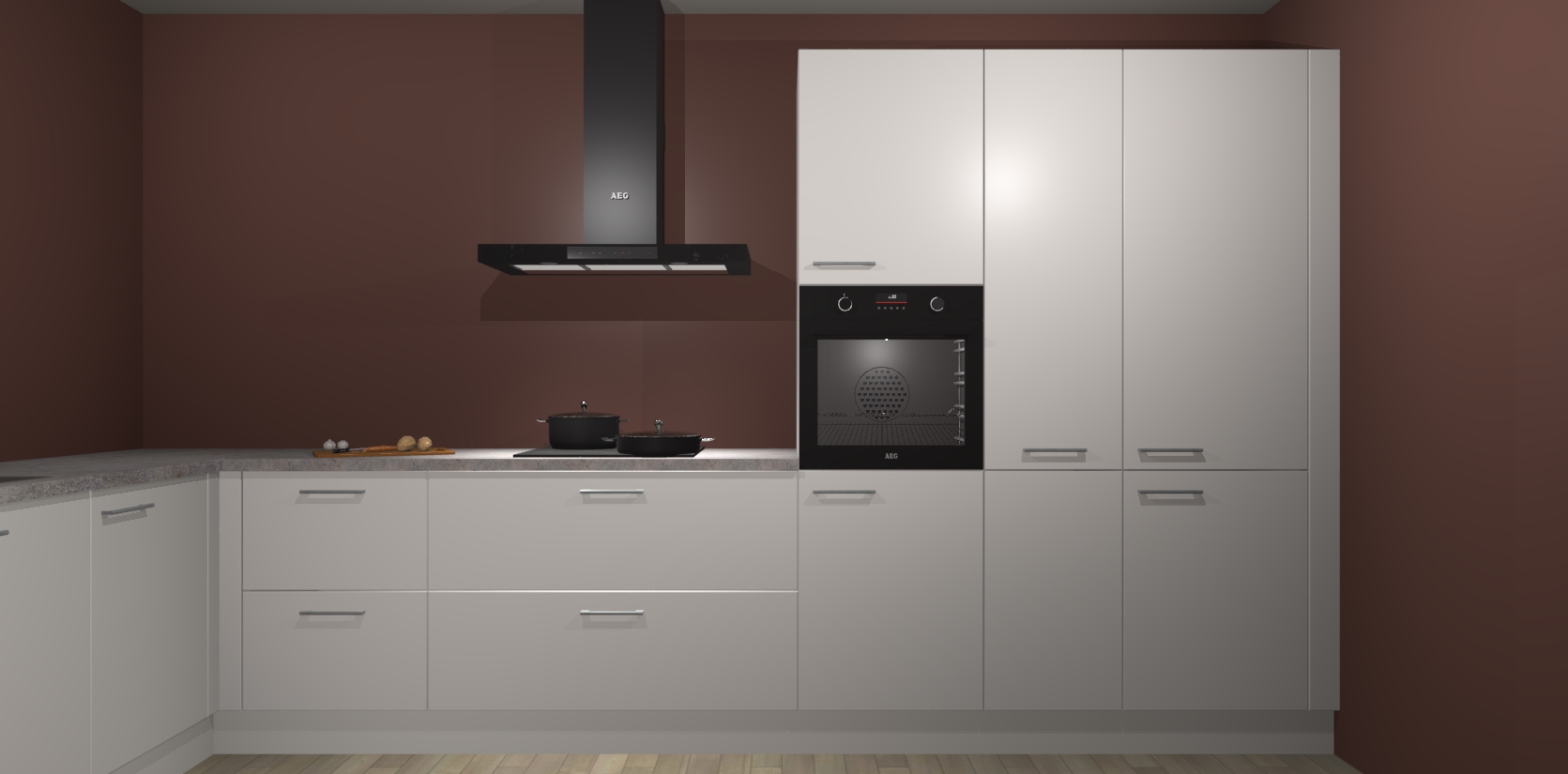 Welkom bij de zijdegrijze keuken Nuuk. Deze prachtige keuken zal de komende jaren het middelpunt van de belangstelling in uw huis zijn. Uitgerust met vijf inbouwapparaten komt u nooit kookgereedschap tekort.