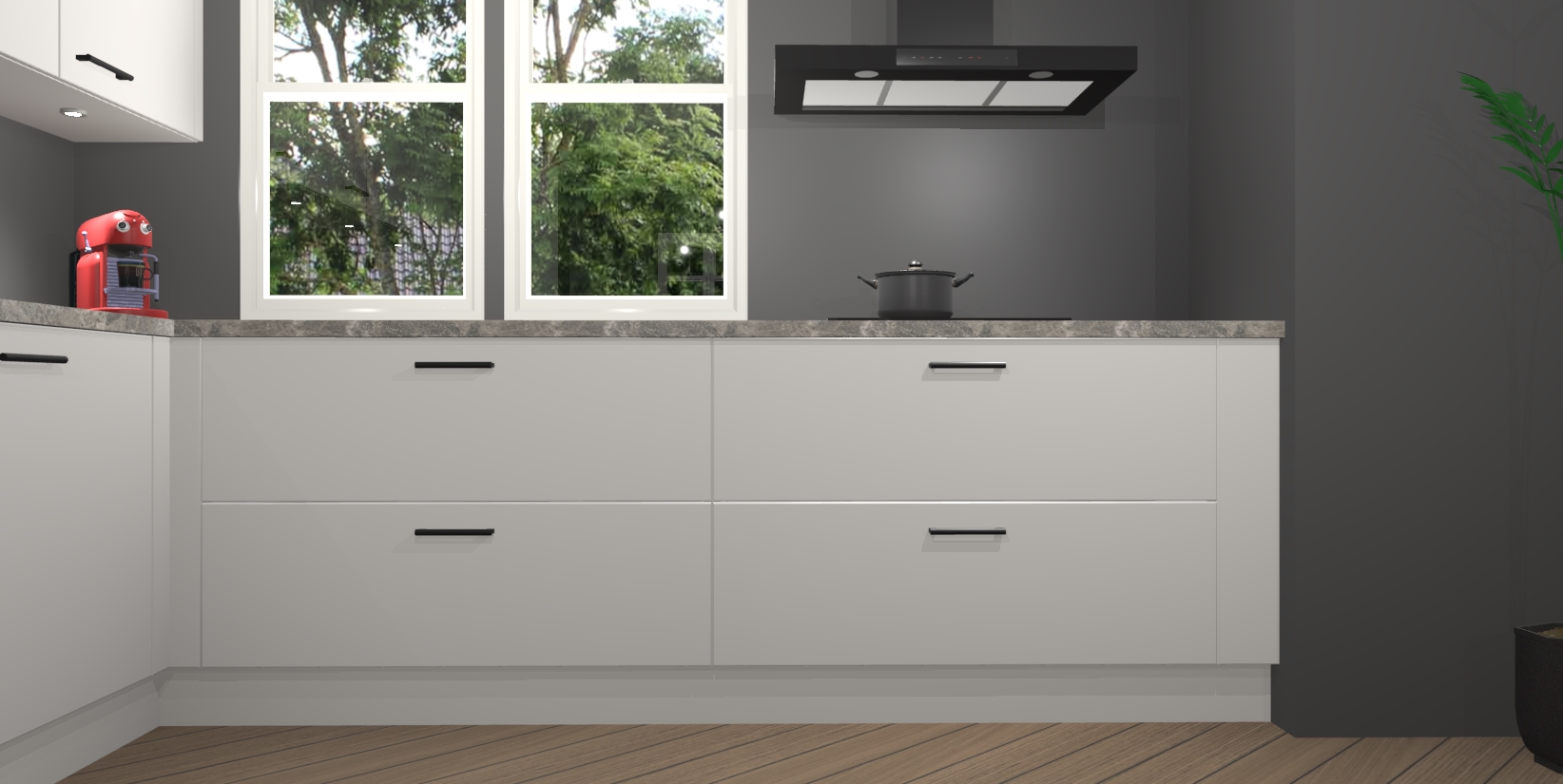 Inclusief plinten, stelpoten en werkblad