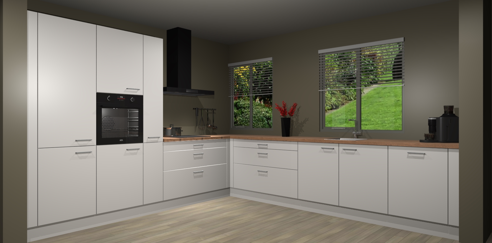 Welkom bij de Zijdegrijze keuken Palermo. Deze prachtige keuken zal de komende jaren het middelpunt van de belangstelling in uw huis zijn. Uitgerust met vijf inbouwapparaten komt u nooit kookgereedschap tekort. Bovendien geeft de warme houtlook elke ruimte een uitnodigende en tijdloze uitstraling.