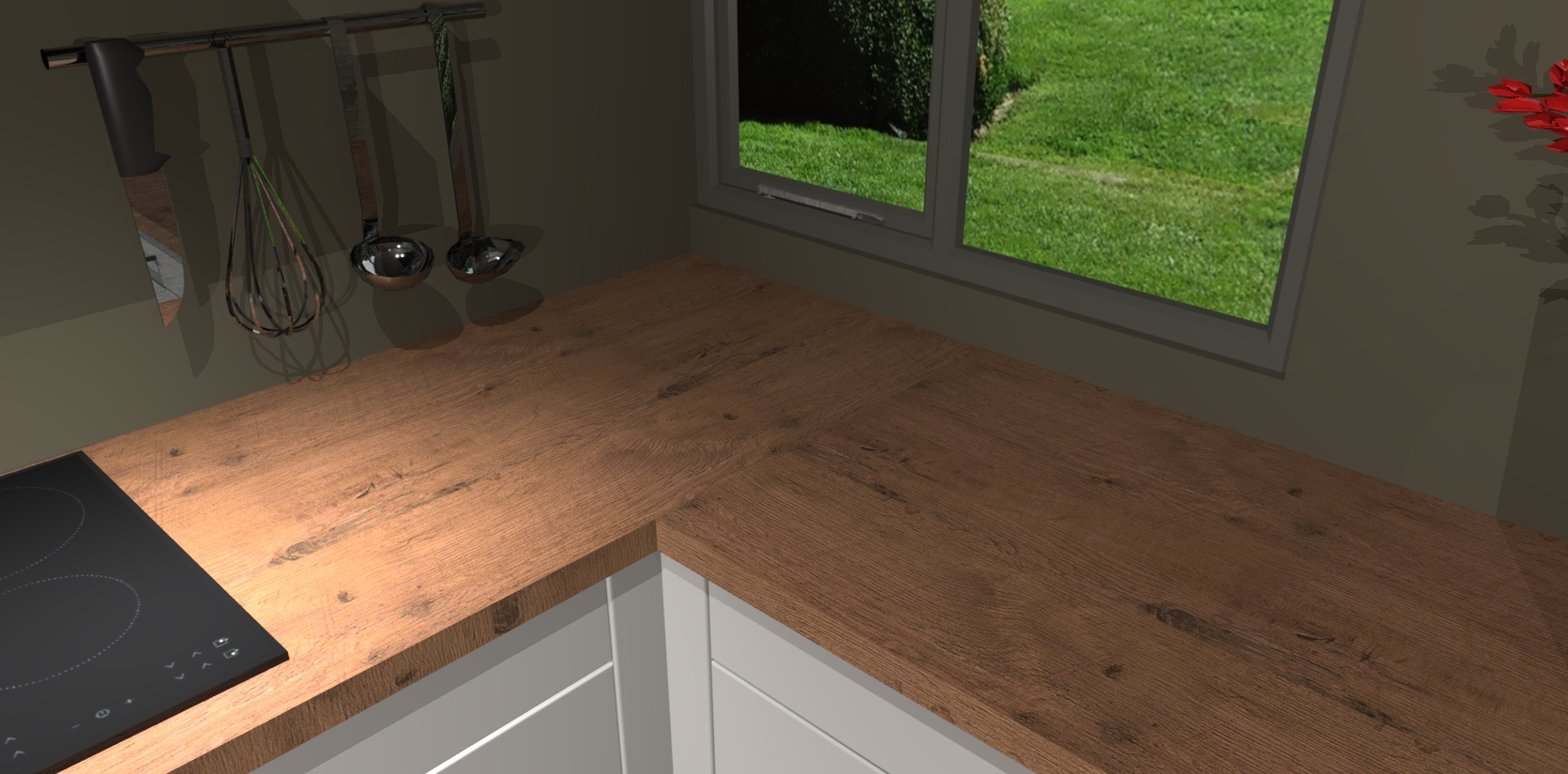 - Bij een hoekwerkblad zijn de hoeken in gevreesd en op maat gemaakt