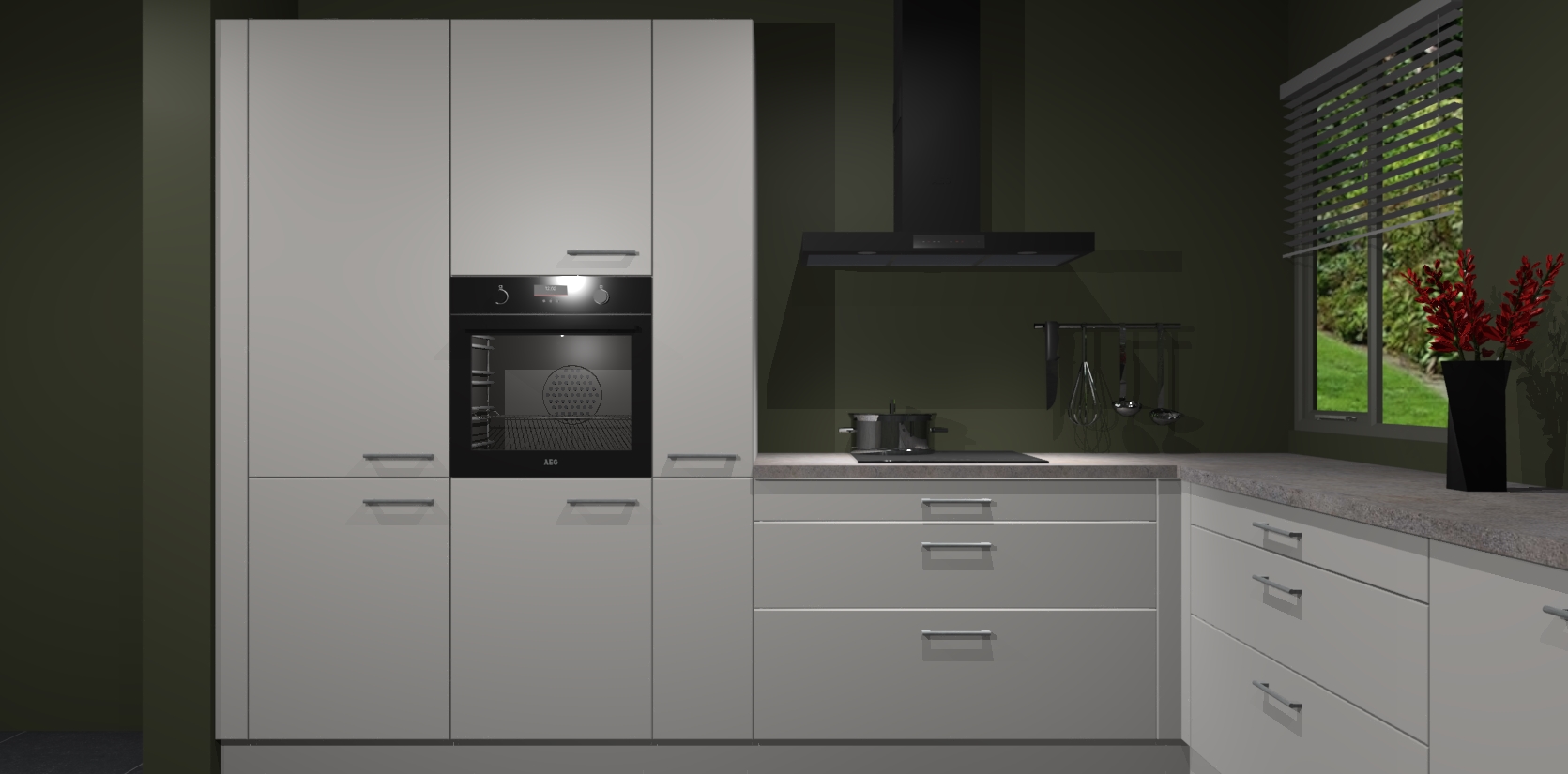 Welkom bij de Zijdegrijze keuken Palermo. Deze prachtige keuken zal de komende jaren het middelpunt van de belangstelling in uw huis zijn. Uitgerust met vijf inbouwapparaten komt u nooit kookgereedschap tekort. Bovendien geeft de warme houtlook elke ruimte een uitnodigende en tijdloze uitstraling.