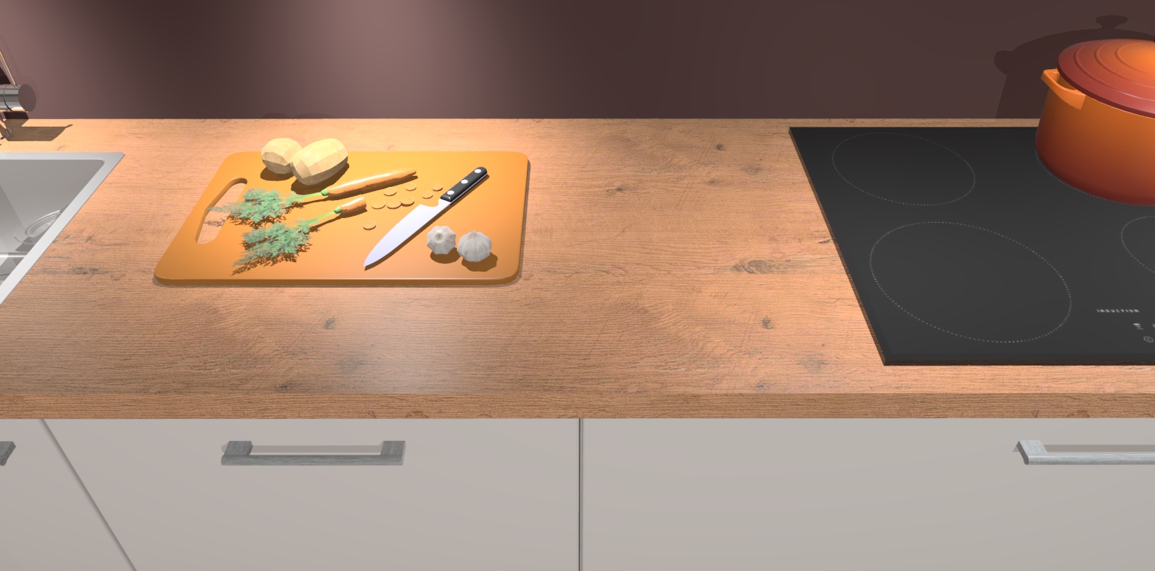 - Uitsparing van kookplaat, spoelbak en kraan dient u zelf te verzorgen.