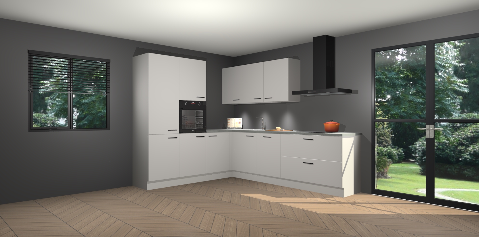 Met de zijdegrijze keuken Parla Maakt u van uw keuken het pronkstuk van uw huis. Stijlvol en toch praktisch, de nieuwste look voor wie meer waarde en charme aan zijn huis wil toevoegen. Met prachtige zwarte handgrepen die zich lenen voor een klassieke stijlbron, zal u niet teleurgesteld zijn in het resultaat. De soft-close deurscharnieren geven een gevoel van luxe omdat ze zachtjes bewegen zonder storende of krakende geluiden te veroorzaken.