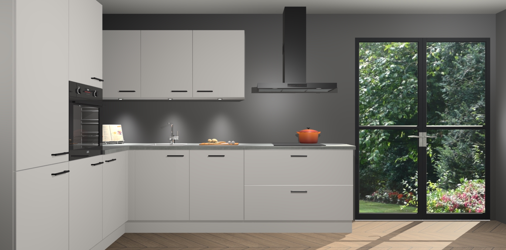 Maak kennis met de zijdegrijze keuken Parla - de perfecte aanvulling voor uw moderne keuken! Ervaar tijdloos design, elegantie en een chique uitstraling met onze zwarte handgrepen, soft-close deuren en veel opbergruimte. Dit alles wordt aangeboden tegen een vaste lage prijs voor ongeëvenaarde Duitse keukenkwaliteit!