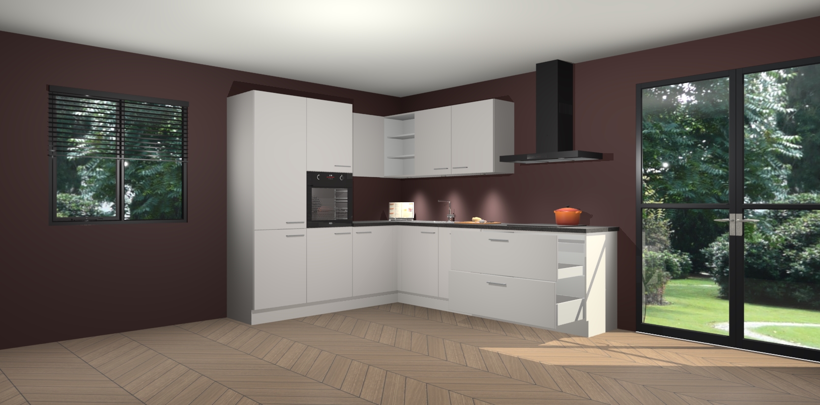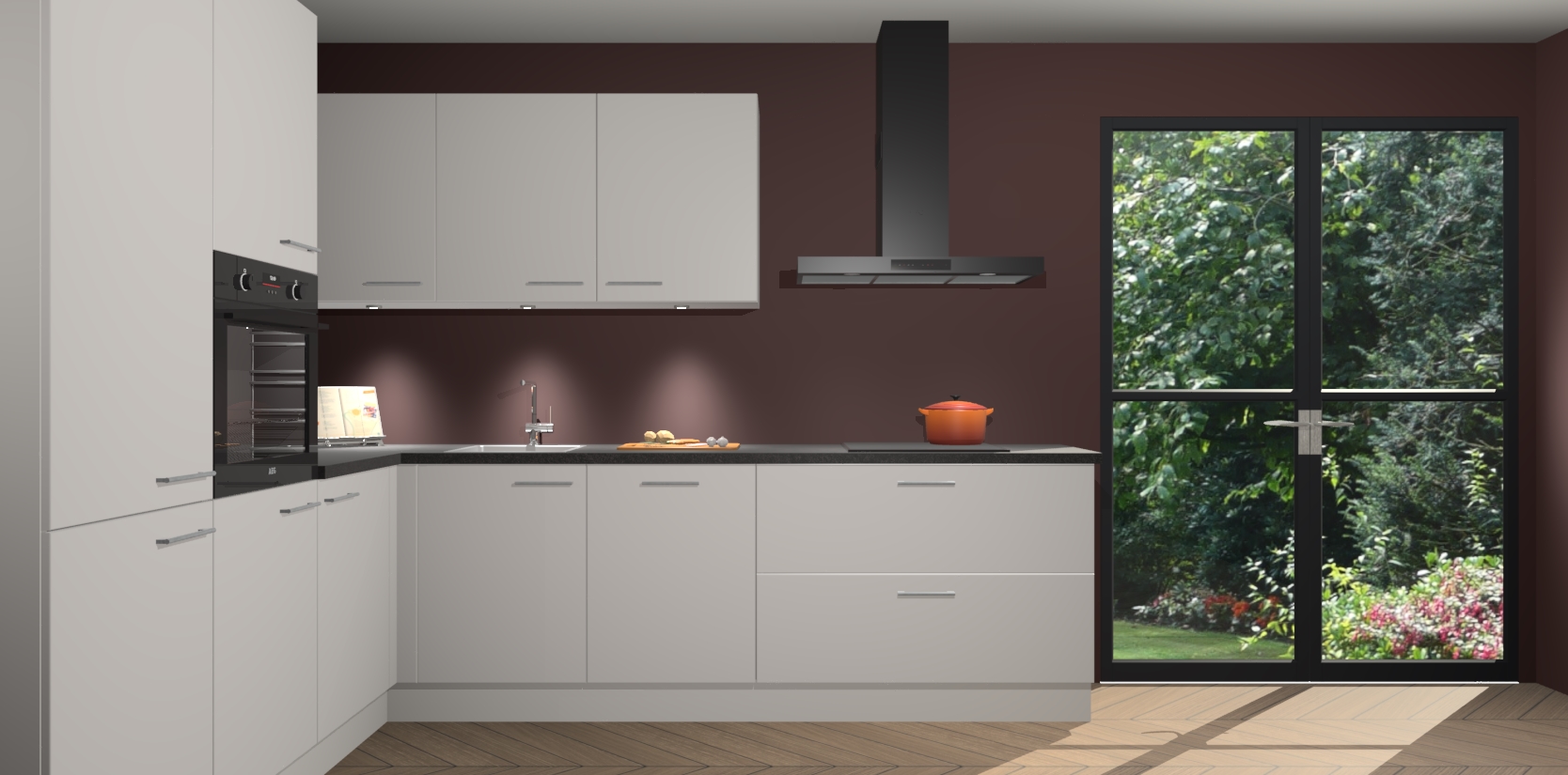 Maak kennis met de zijdegrijze keuken Parla - de perfecte aanvulling voor uw moderne keuken! Ervaar tijdloos design, elegantie en een chique uitstraling met onze zwarte handgrepen, soft-close deuren en veel opbergruimte. Dit alles wordt aangeboden tegen een vaste lage prijs voor ongeëvenaarde Duitse keukenkwaliteit!