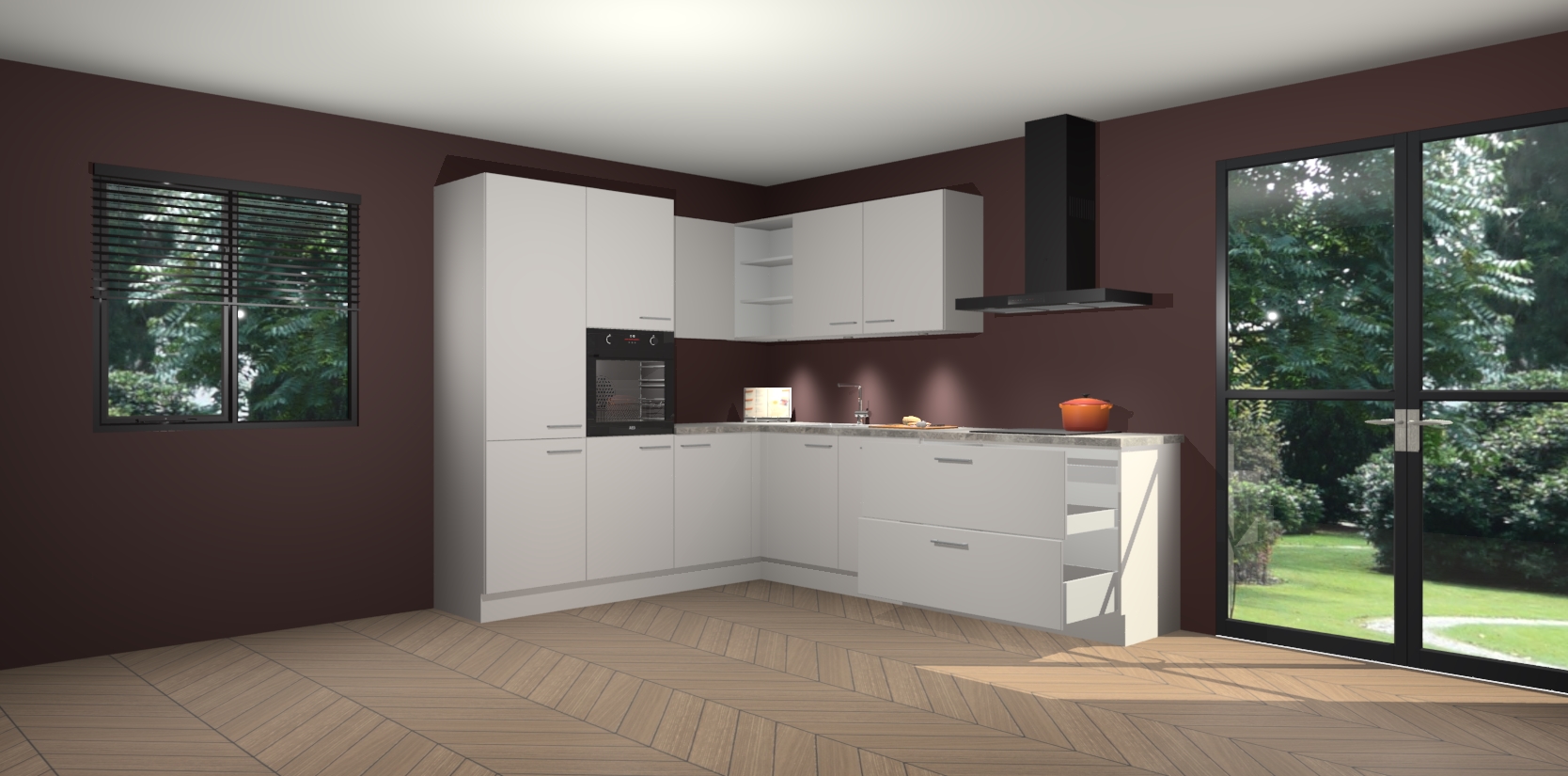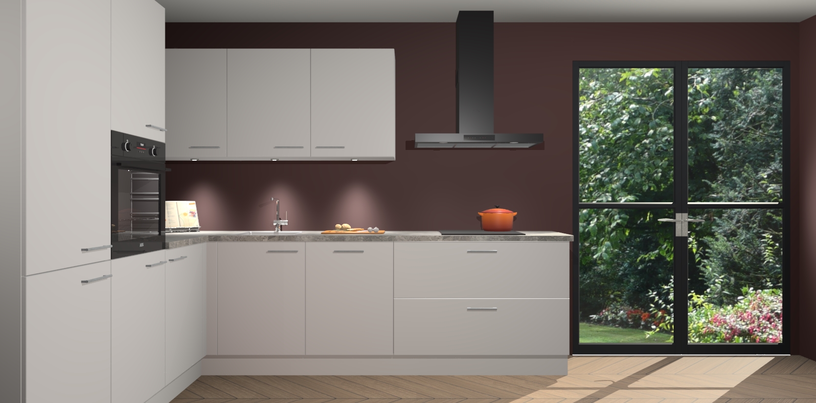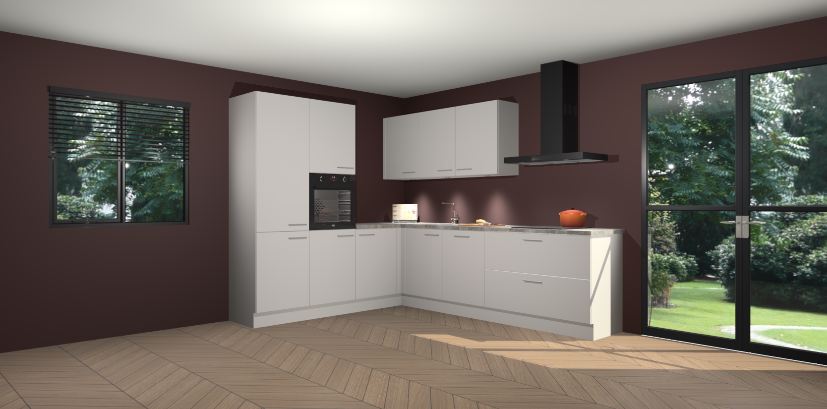 Maak kennis met de zijdegrijze keuken Parla - de perfecte aanvulling voor uw moderne keuken! Ervaar tijdloos design, elegantie en een chique uitstraling met onze zwarte handgrepen, soft-close deuren en veel opbergruimte. Dit alles wordt aangeboden tegen een vaste lage prijs voor ongeëvenaarde Duitse keukenkwaliteit!
