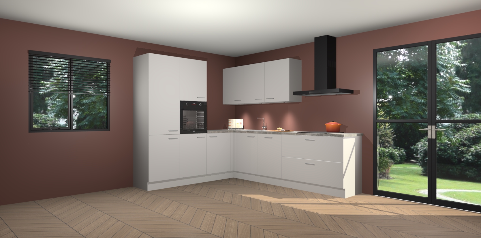 Maak kennis met de zijdegrijze keuken Parla - de perfecte aanvulling voor uw moderne keuken! Ervaar tijdloos design, elegantie en een chique uitstraling met onze zwarte handgrepen, soft-close deuren en veel opbergruimte. Dit alles wordt aangeboden tegen een vaste lage prijs voor ongeëvenaarde Duitse keukenkwaliteit!