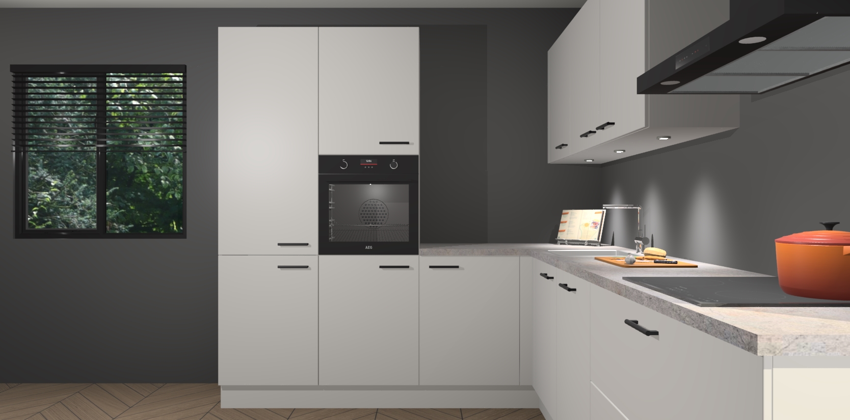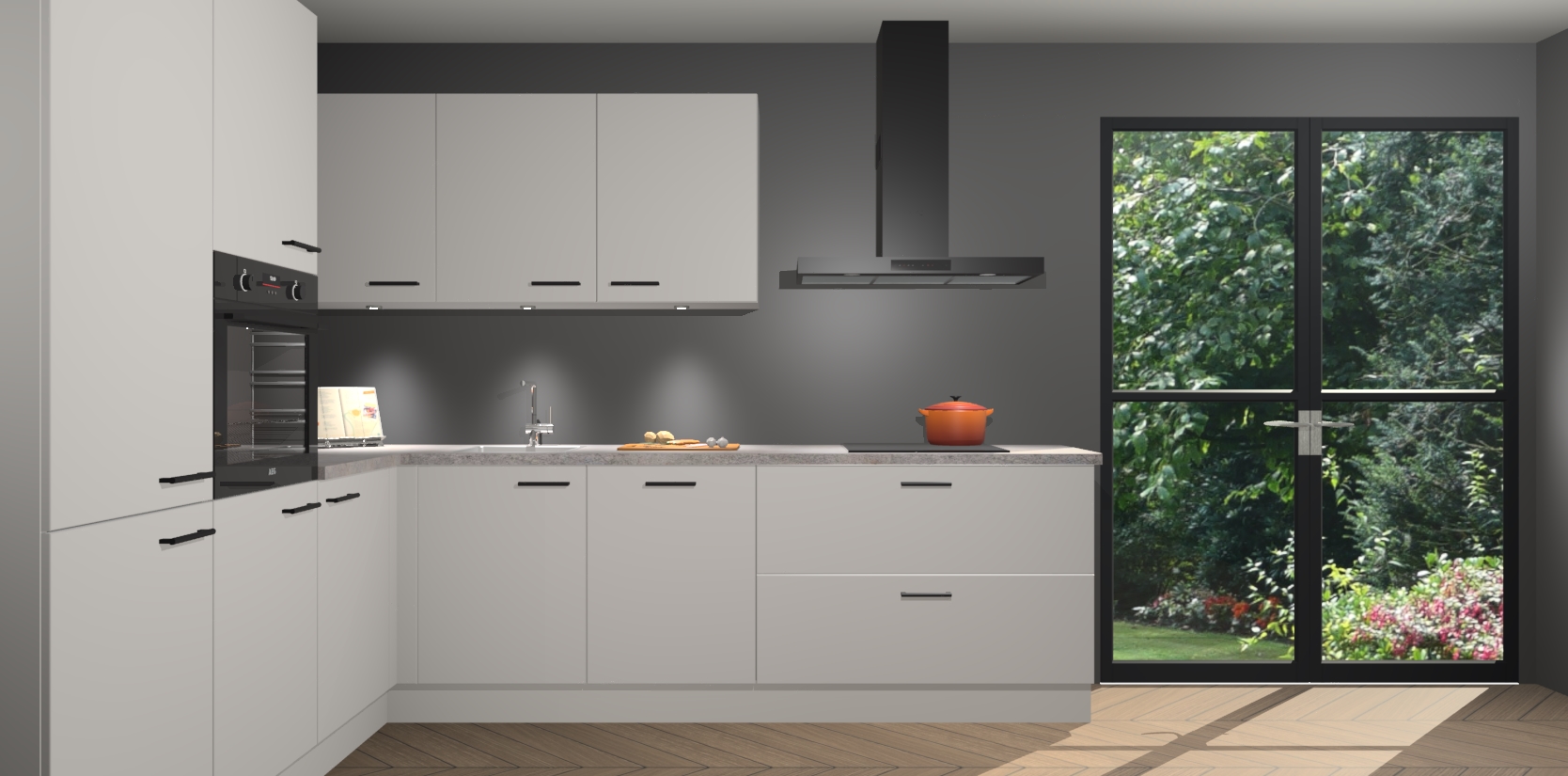Maak kennis met de zijdegrijze keuken Parla - de perfecte aanvulling voor uw moderne keuken! Ervaar tijdloos design, elegantie en een chique uitstraling met onze zwarte handgrepen, soft-close deuren en veel opbergruimte. Dit alles wordt aangeboden tegen een vaste lage prijs voor ongeëvenaarde Duitse keukenkwaliteit!
