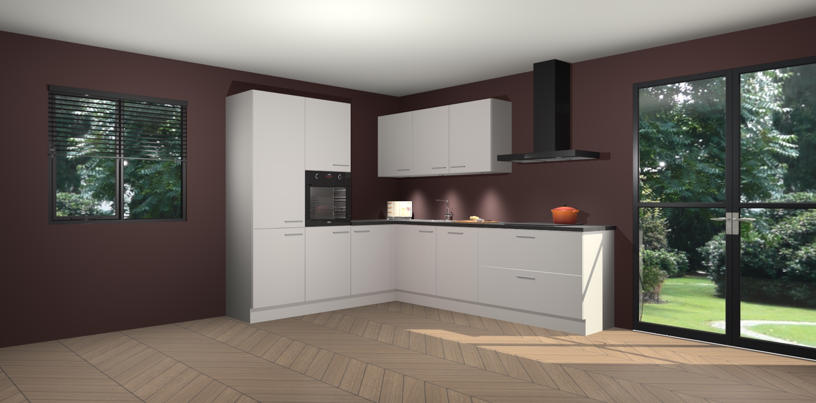 Met de zijdegrijze keuken Parla Maakt u van uw keuken het pronkstuk van uw huis. Stijlvol en toch praktisch, de nieuwste look voor wie meer waarde en charme aan zijn huis wil toevoegen. Met prachtige zwarte handgrepen die zich lenen voor een klassieke stijlbron, zal u niet teleurgesteld zijn in het resultaat. De soft-close deurscharnieren geven een gevoel van luxe omdat ze zachtjes bewegen zonder storende of krakende geluiden te veroorzaken.