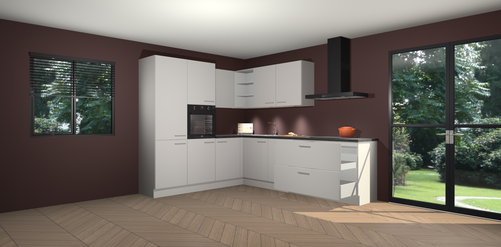 Maak kennis met de zijdegrijze keuken Parla - de perfecte aanvulling voor uw moderne keuken! Ervaar tijdloos design, elegantie en een chique uitstraling met onze zwarte handgrepen, soft-close deuren en veel opbergruimte. Dit alles wordt aangeboden tegen een vaste lage prijs voor ongeëvenaarde Duitse keukenkwaliteit!