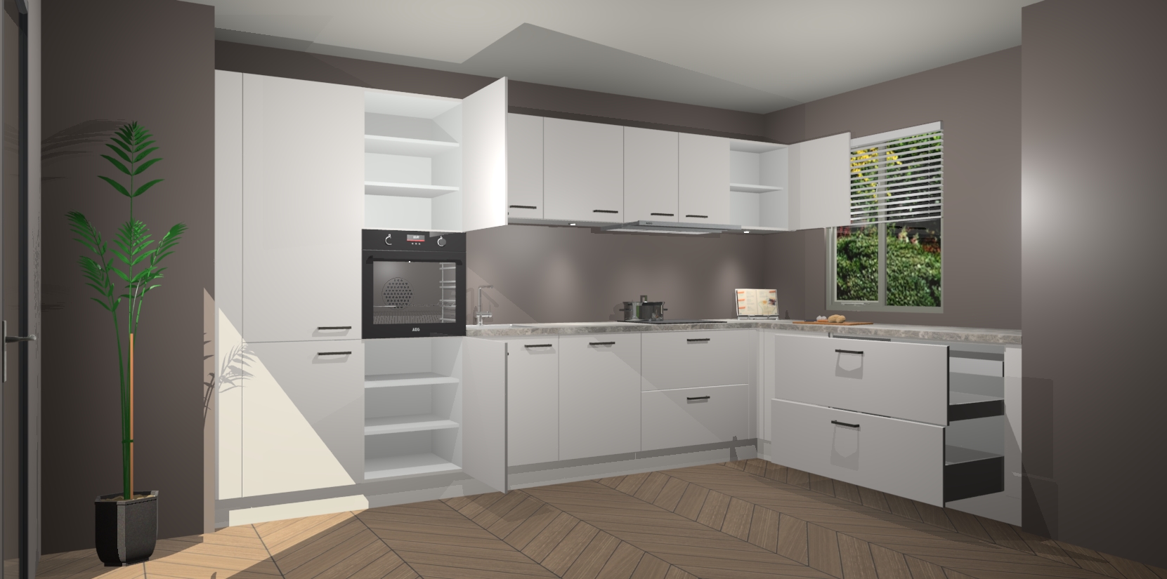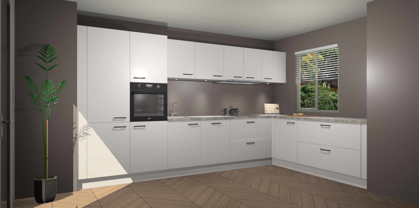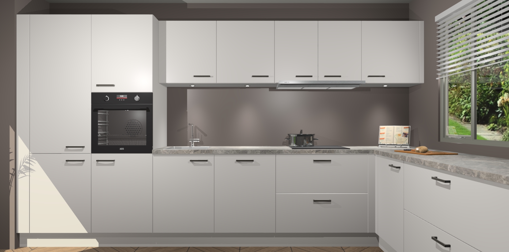 Verwelkom de natuurlijke warmte van de Zijdegrijze keuken Petten in uw huis. Deze prachtige hoekkeuken met zijn moderne design en warme houten look geeft u meer dan genoeg opbergruimte om uw comfortabel te voelen in uw keuken. Geniet van soft-close deuren die al uw gasten het gevoel zullen geven dat ze zich in een luxueuze ruimte bevinden.