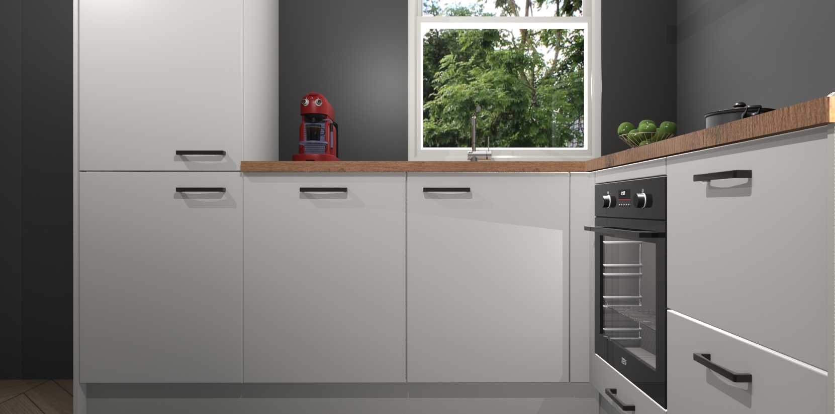 De prachtige Zijdegrijze keuken Phuket is de perfecte keuze als u op zoek bent naar een moderne hoekkeuken met alle luxe en comfort die u kunt verwachten! De uitstraling in het houtlook-design draagt bij aan de warme sfeer die u nu al voelt wanneer u er naar kijkt. Heeft u genoeg van ouderwetse keukens? Probeer dan direct deze moderne, mooie hoekkeukens en laat iedereen verbluft achter!