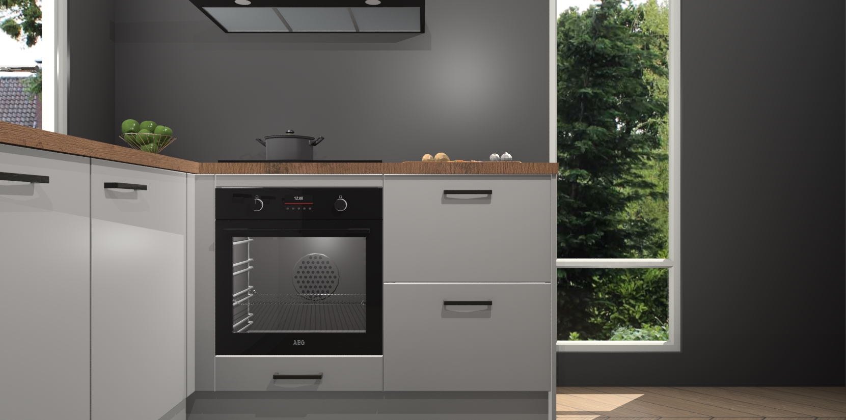 De Zijdegrijze keuken Phuket heeft alles wat u maar kunt wensen. Niet alleen zijn er softclose deuren, maar ook 5 ingebouwde apparaten: een oven, inductiekookplaat, afzuigkap, vaatwasser en koelkast - waarbij u later gemakkelijk naar het AEG merk, van inductiekookplaat naar kookplaat met geïntegreerde afzuiging of van oven naar combimagnetron kunt upgraden. Dat alles tegen een vast laag tarief! Bovendien geeft de Zijdegrijze keuken Phuket supersnelle levering van 7 weken. Echt iets voor u als u er niet op wilt wachten om het resultaat te zien in eigen keuken!